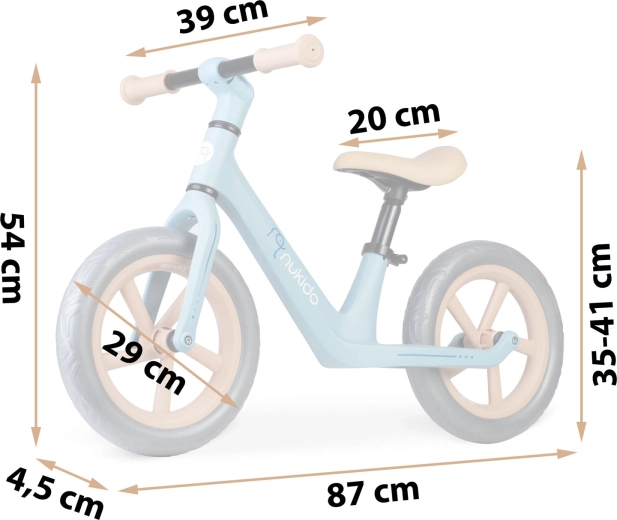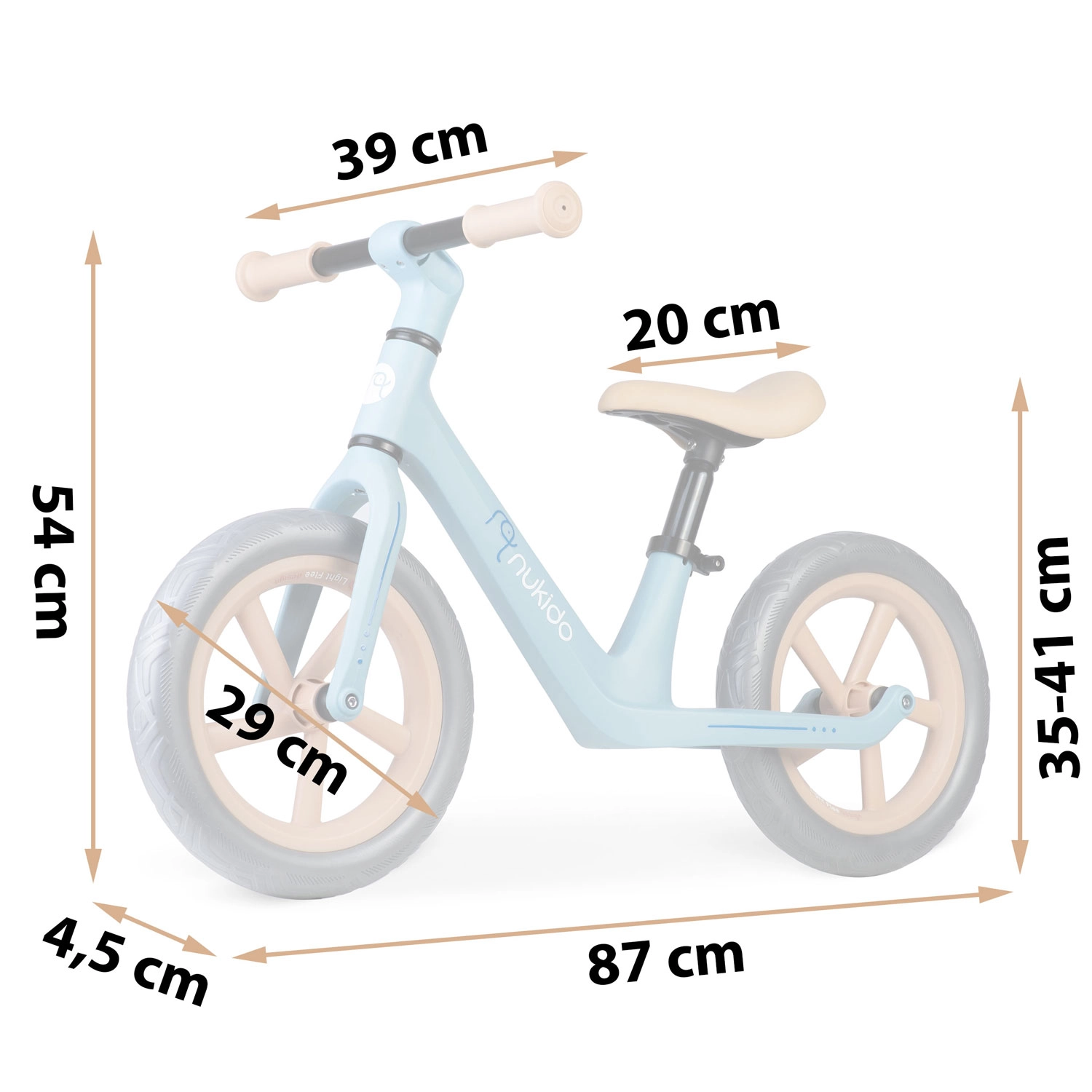 La draisienne Nukido Light Flee aide les enfants à développer naturellement l’équilibre, la concentration et la confiance en soi. Sa faible masse de 2,8 kg facilite la manipulation même pour les plus petits, tandis que la structure du cadre en nylon est à la fois robuste et légère. Les roues 12" en EVA sans chambre à air sont sans entretien et increvables – idéales pour un usage quotidien.