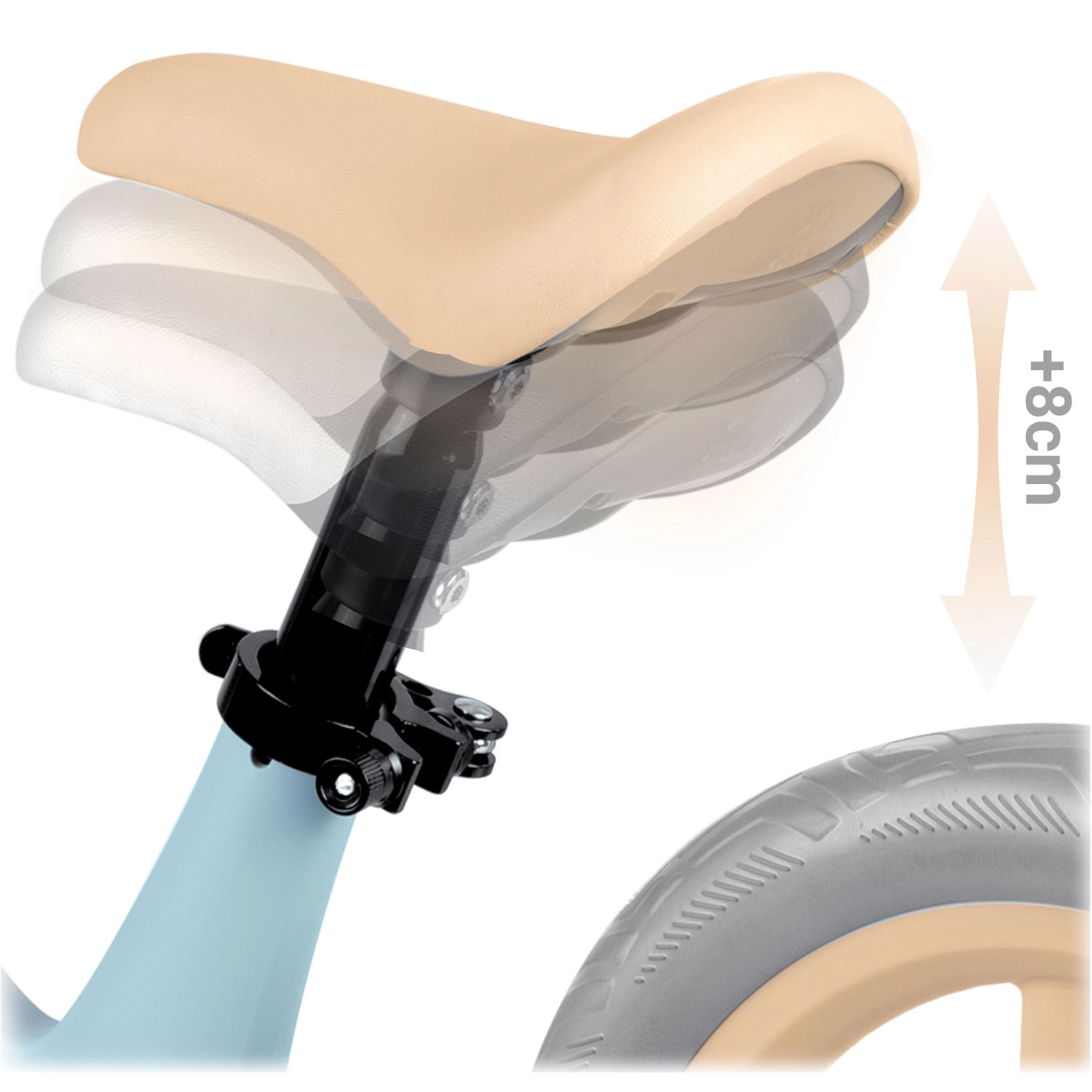 La hauteur de selle réglable sur 8 cm assure une position idéale et du confort à chaque phase de croissance.