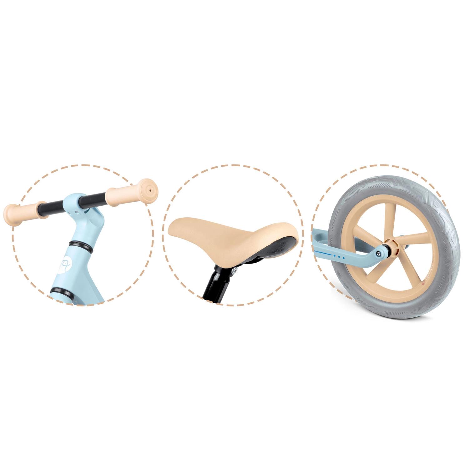 Grâce à la hauteur de selle réglable de 35 à 41 cm, la draisienne grandit avec l’enfant et assure du confort à chaque étape. La selle ergonomique en mousse et les poignées antidérapantes avec butées augmentent le confort et la sécurité à chaque sortie.