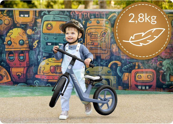 Un poids de seulement 2,8 kg facilite le démarrage, le pilotage et le transport. L’enfant apprend plus vite à garder l’équilibre et à tourner sans effort inutile.