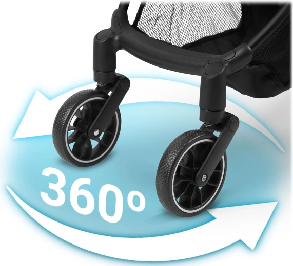 La poussette se plie à une main en 2 secondes en un format compact qui tient dans le coffre et en bagage cabine. Le panier inférieur accueille courses et jouets. Le dossier réglable jusqu’à l’entière position allongée et le repose-pieds ajustable sont parfaits pour se reposer en déplacement – dès les premiers mois et jusqu’à 36 mois (max. 15 kg).