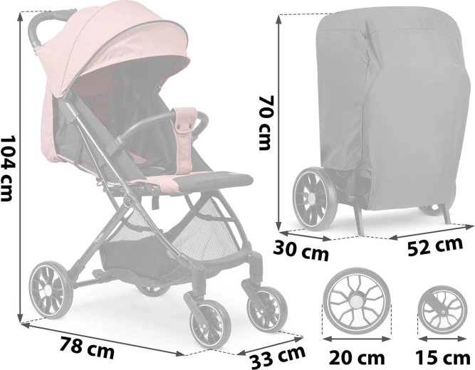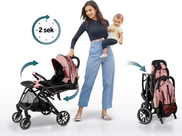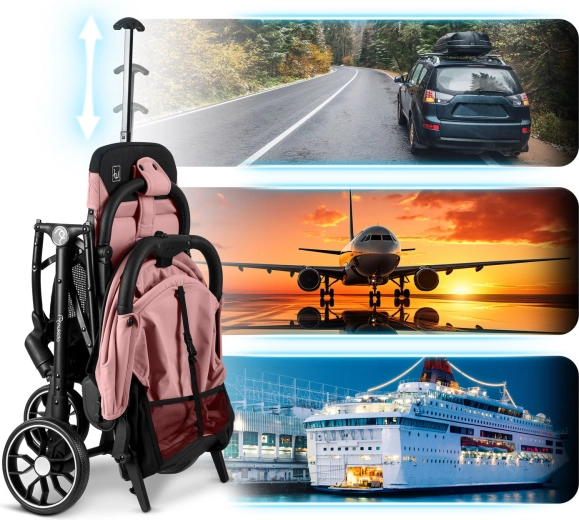 Un bouton intuitif permet un pliage ultra-rapide d’une seule main. La poussette tient debout une fois pliée et passe au format bagage cabine – idéale pour la voiture et l’avion.