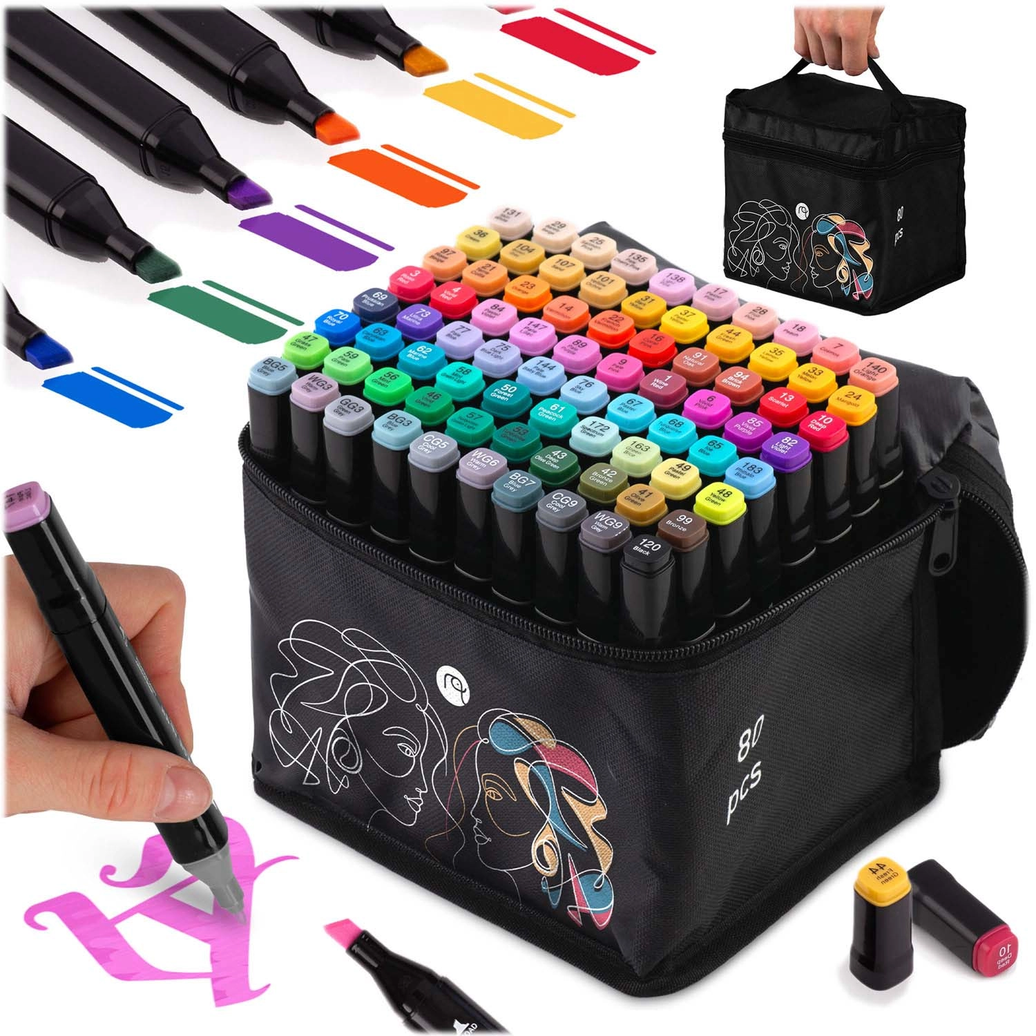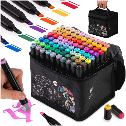 Marqueurs alcool à double pointe avec étui 80 pcs NUKIDO