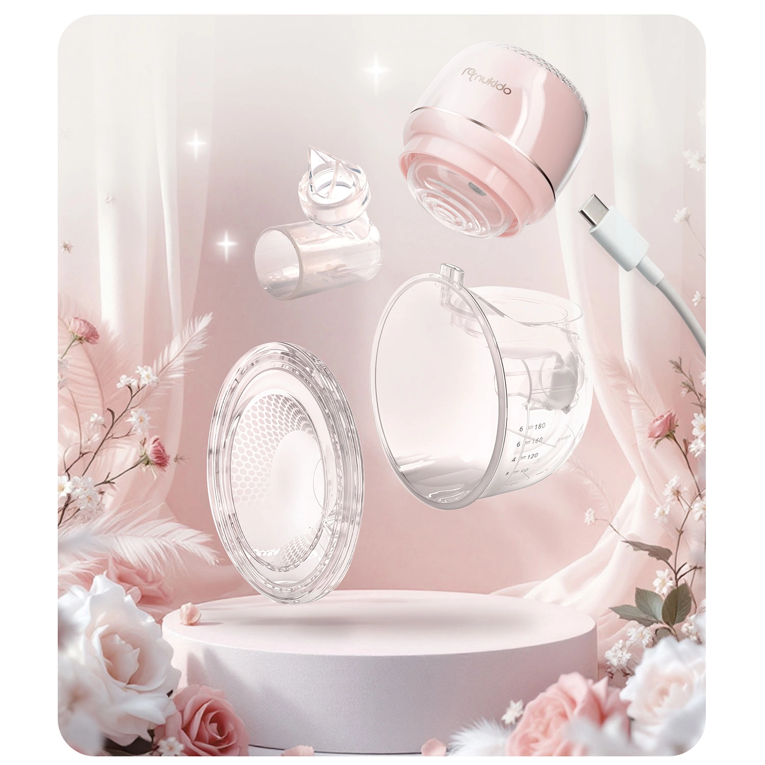 L’emballage comprend tout le nécessaire pour une utilisation immédiate : embout massant avec capuchon anti‑poussière, corps avec moteur puissant et écran LED, membrane en silicone, câble avec adaptateur, clip de réglage de bretelle de soutien‑gorge et récipient à lait de 210 ml. Son design compact et discret est idéal à la maison, au travail, en voyage comme au repos.