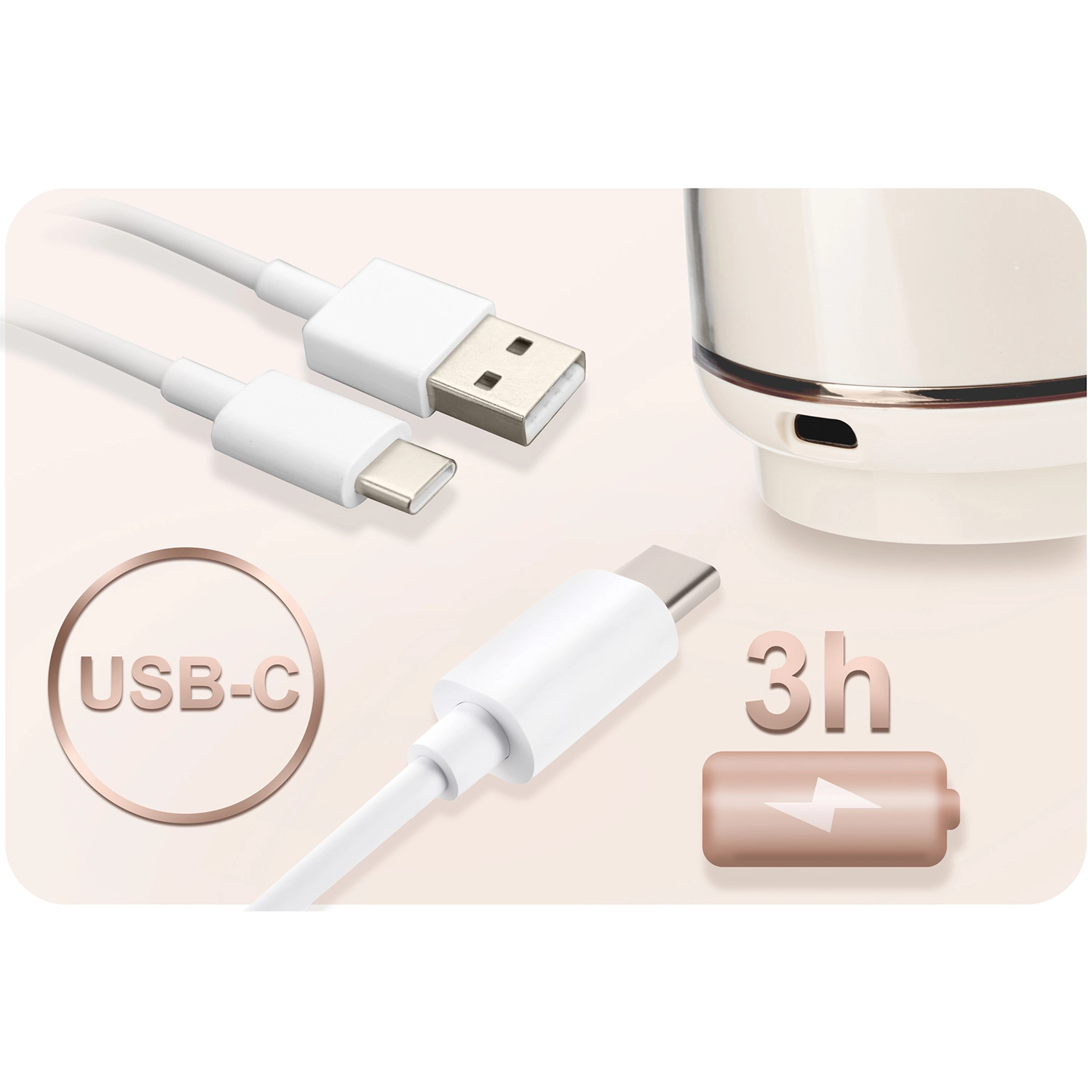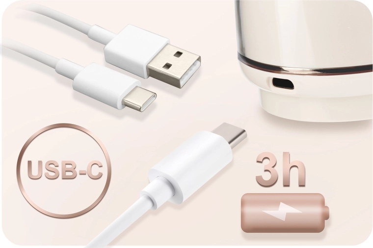 - Fonctionnement sans fil, recharge USB‑C, autonomie jusqu’à 3 heures