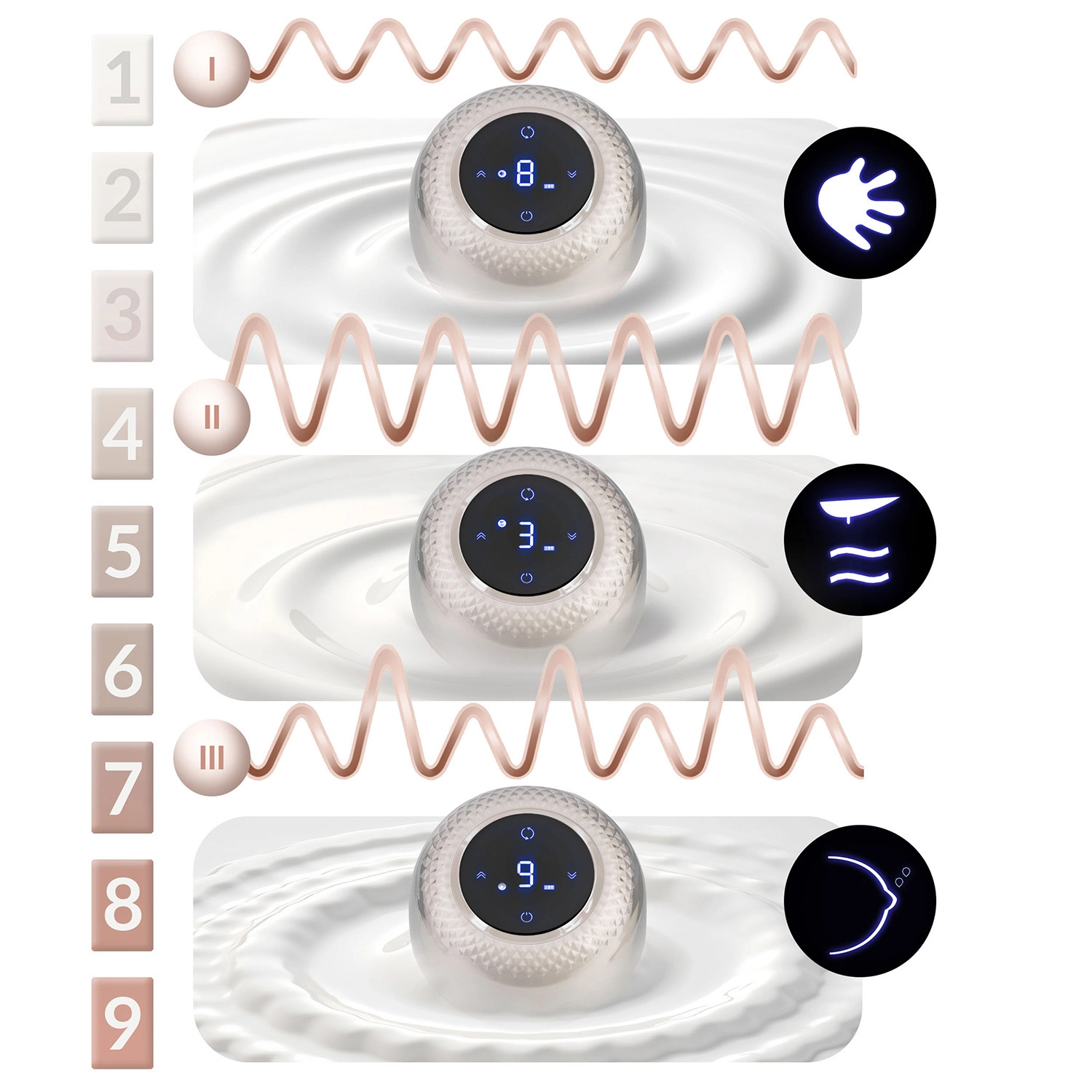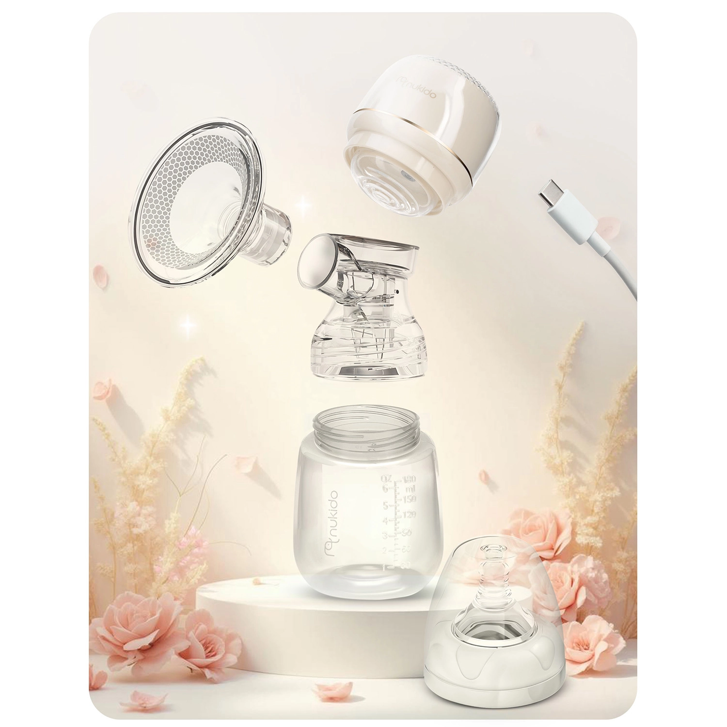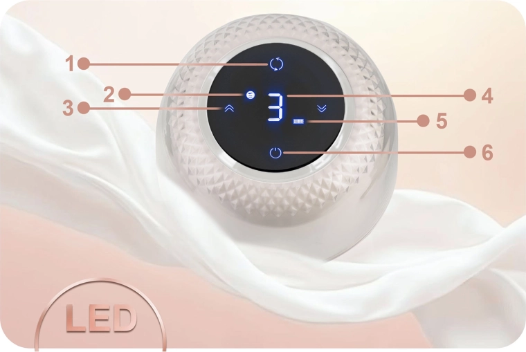 La coupelle de massage en silicone ergonomique stimule en douceur l’écoulement du lait, assure une bonne étanchéité et reste confortable lors d’utilisations prolongées. Grâce au fonctionnement sans fil avec batterie lithium intégrée et à la recharge USB‑C, vous profitez d’une liberté de mouvement jusqu’à 3 heures. L’écran LED à commandes tactiles affiche le mode sélectionné, le niveau de stimulation et l’état de la batterie, lisible même la nuit.