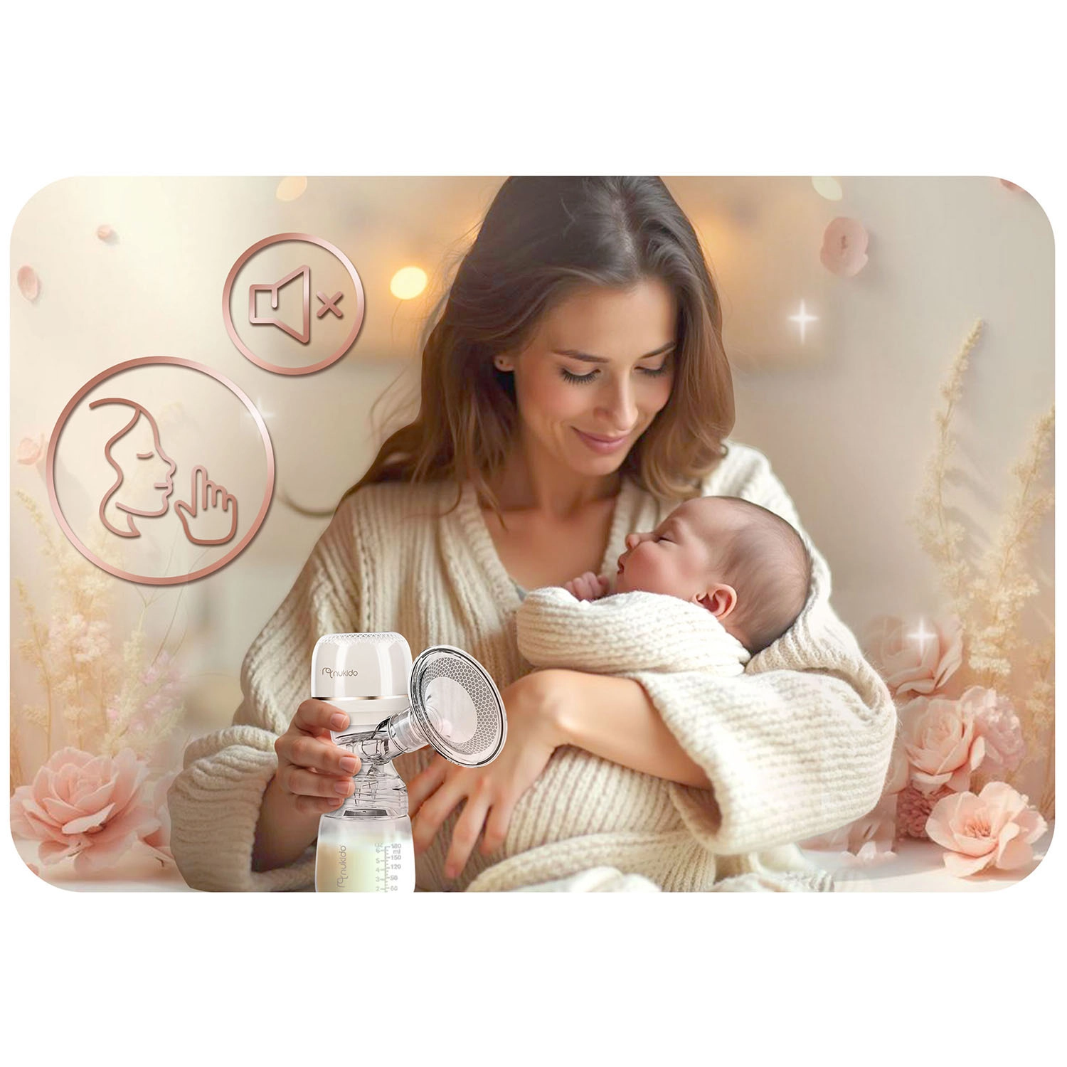 Le tire-lait Nukido reproduit fidèlement le rythme naturel de succion du bébé en trois phases – de la stimulation douce à l’aspiration profonde jusqu’à une finition efficace de l’extraction. Chaque phase peut être ajustée avec 9 niveaux d’intensité pour un confort maximal et une grande délicatesse pour la peau sensible.