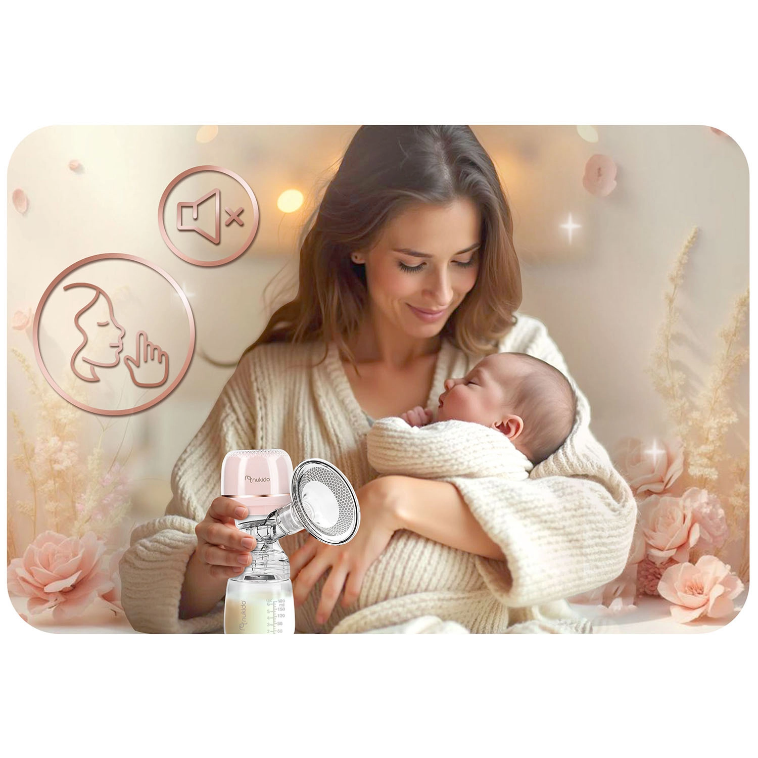 Le tire-lait NUKIDO est conçu pour un pompage confortable, efficace et doux à tout moment et en tout lieu. La technologie reproduit fidèlement le rythme naturel de succion du bébé en trois phases, de sorte que la stimulation et l’extraction sont naturelles et performantes. Grâce à 9 niveaux de réglage, vous adaptez facilement la force d’aspiration à vos besoins, tandis que le fonctionnement silencieux ne dérange pas le sommeil de l’enfant.