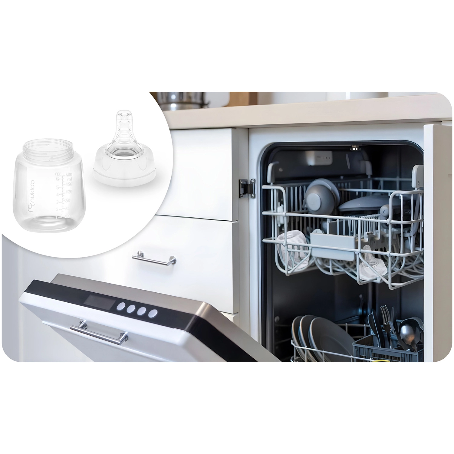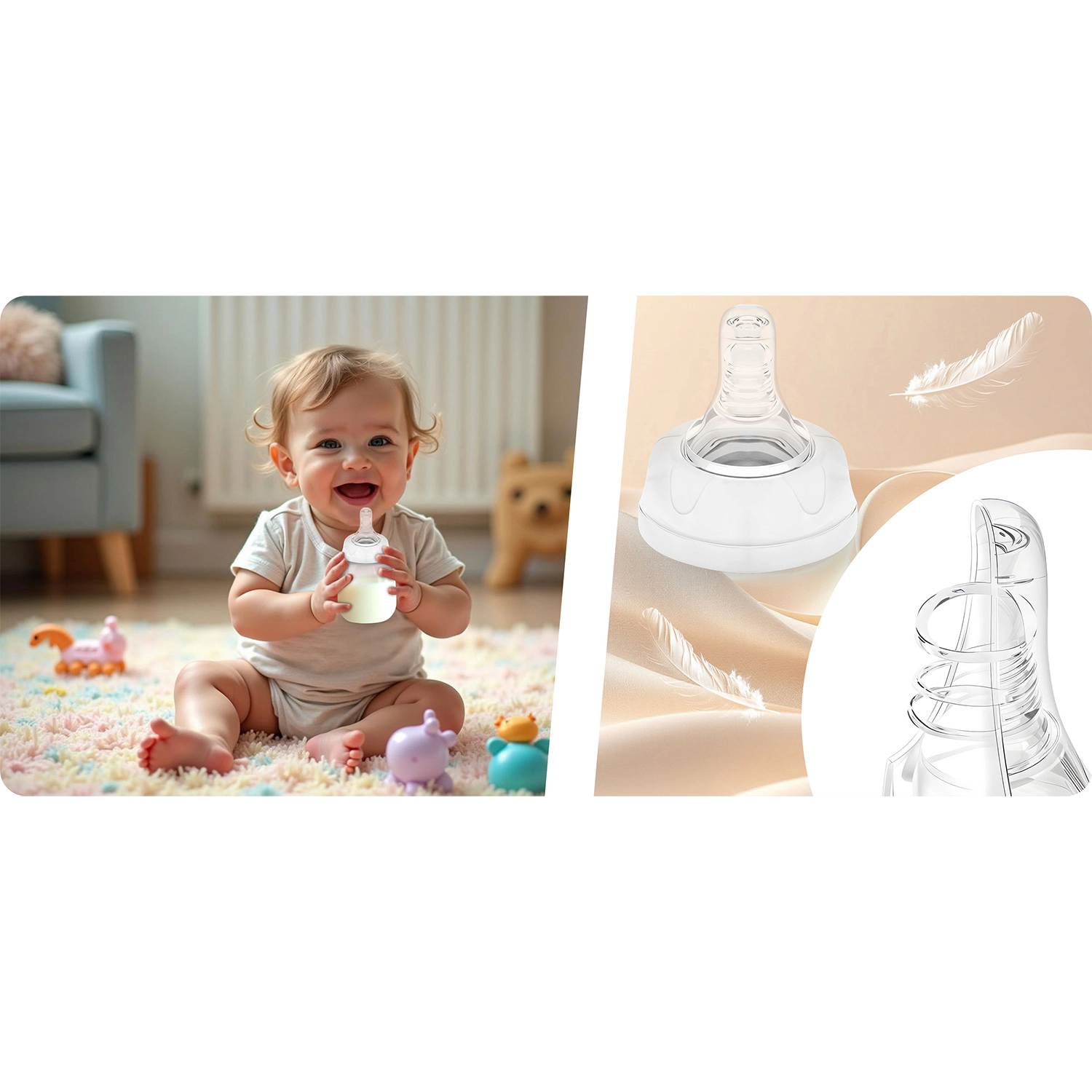- Accessoires pratiques : capuchons de protection pour tétines et bouchons anti-renversement