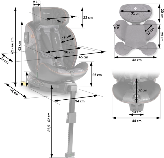 Les flancs renforcés avec système SIP absorbent l’énergie en cas de collision latérale. L’ancrage ISOFIX solide avec jambe de stabilisation accroît la stabilité et réduit le risque de mauvaise installation.
