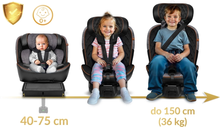 Pour les plus petits, un harnais de sécurité 5 points et un insert ergonomique pour nouveau-né sont prévus. Pour les enfants plus grands, le siège propose le guidage de la ceinture du véhicule via 4 points d’ancrage, et s’adapte à la croissance grâce aux 12 niveaux de réglage de l’appuie-tête et aux 5 positions d’inclinaison. Des matériaux premium, un rembourrage moelleux matelassé et des détails bien pensés (aimants pour maintenir les sangles, manchons antidérapants) améliorent le confort et la praticité au quotidien.