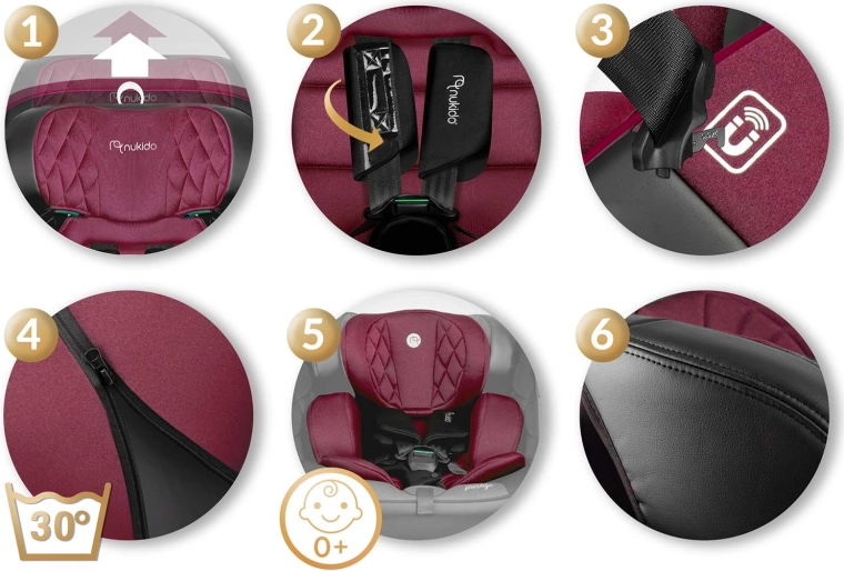 Offrez à votre enfant sécurité et confort dans un seul siège auto qui grandit de la naissance jusqu’à 12 ans. Le modèle Nukido Prestige Line est conforme à la stricte norme ECE R129 i‑Size, dispose d’une base pivotante à 360° pour une installation aisée, de l’ISOFIX et d’un pied de support. Grâce à la protection latérale SIP, à l’appui‑tête à 12 positions, aux harnais à 5 points et au rembourrage doux matelassé, il assure un trajet sûr et confortable au quotidien.