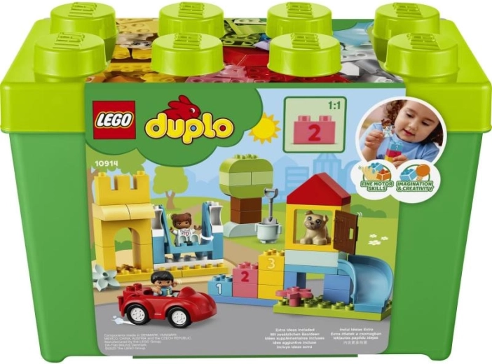 Découvrez des possibilités infinies de création avec la LEGO DUPLO Boîte de briques Deluxe – un ensemble coloré pour les petits bâtisseurs. De grandes pièces sûres aux couleurs vives, 85 briques, d’adorables accessoires et les chiffres 1–5 stimulent le jeu créatif, la motricité fine et les premiers apprentissages. Comprend une pratique boîte de rangement pour un nettoyage et un transport faciles.
