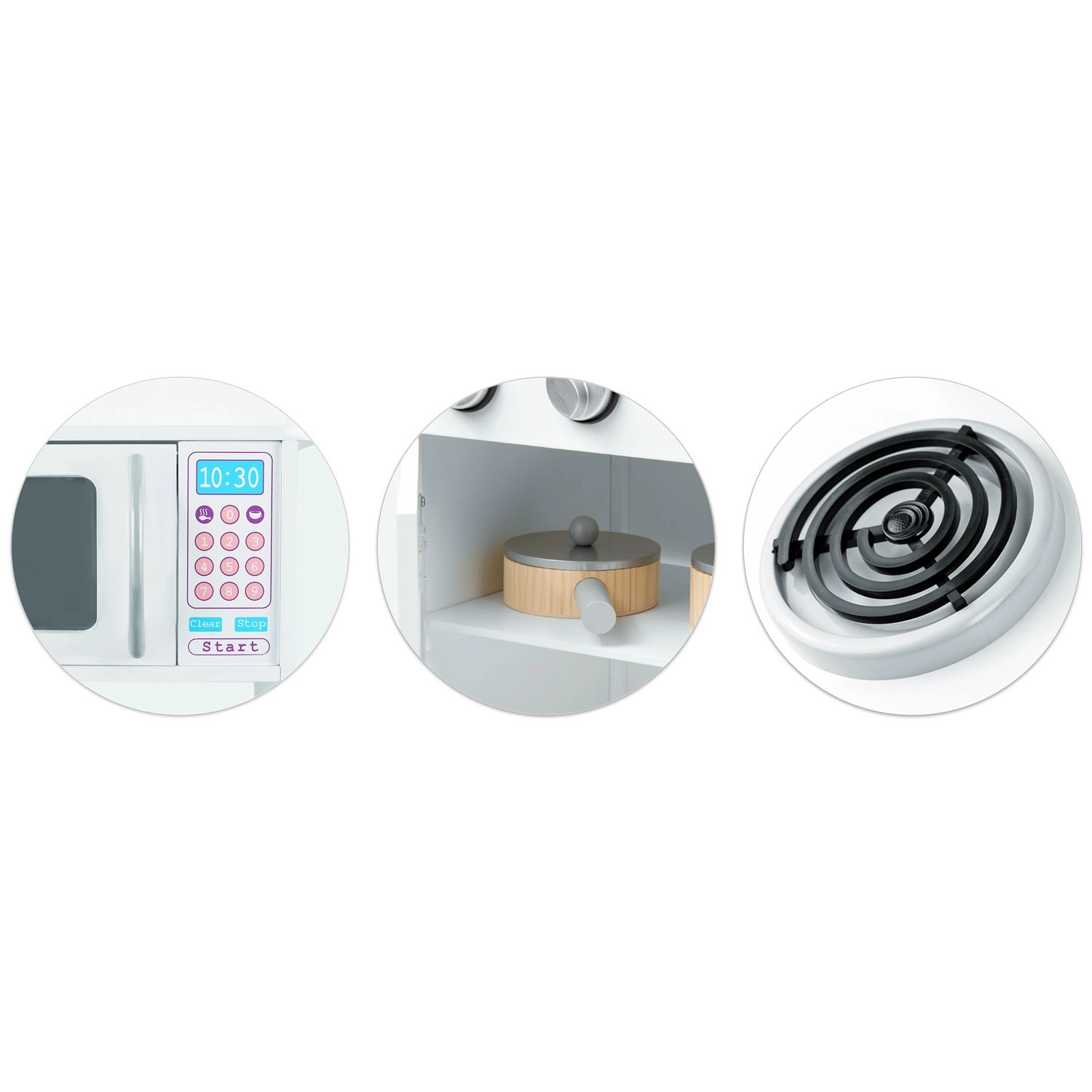 La porte ouvrante et le panneau de commande détaillé favorisent un jeu réaliste – réchauffer et minuter comme dans une vraie cuisine.