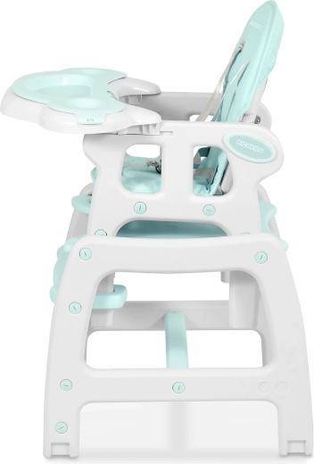 Les parents apprécieront le plateau double amovible aux bords rehaussés avec découpes pour gobelets, lavable sous l’eau courante. Le réglage du dossier en 3 positions, la hauteur ajustable et les harnais de sécurité 5 points maintiennent l’enfant en position stable et sûre. Les roulettes avec possibilité de blocage facilitent les déplacements à la maison et les bords lisses et arrondis sont doux pour les petites mains.
