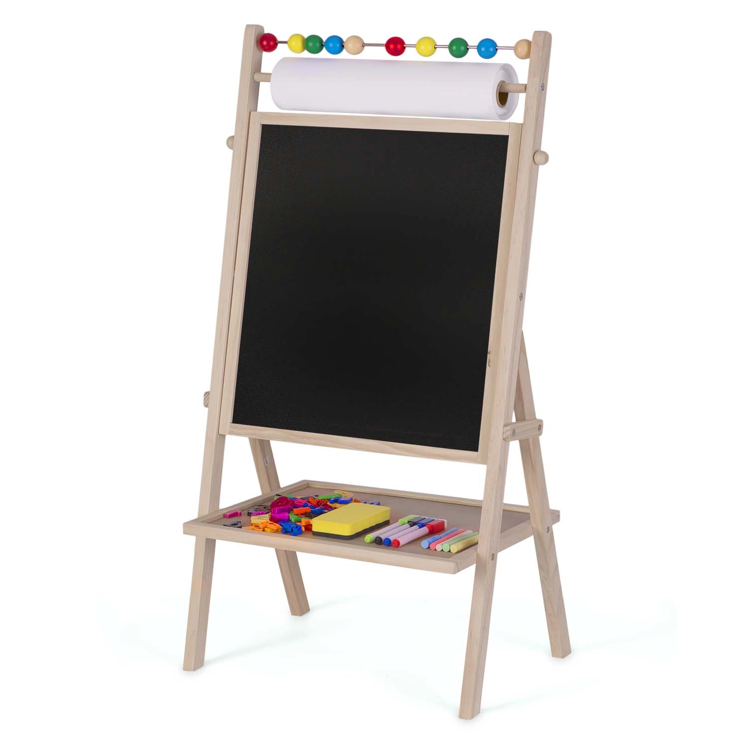 Ce tableau multifonction pour enfants RICOKIDS réunit dessin, écriture et premiers calculs dans un ensemble ludique. La structure rotative offre deux faces – une surface de tableau blanc magnétique pour feutres et aimants et une ardoise à craie classique pour un dessin créatif. Grâce au rouleau de papier de 20 mètres, les enfants peuvent réaliser de grandes œuvres et tester de nouvelles techniques.