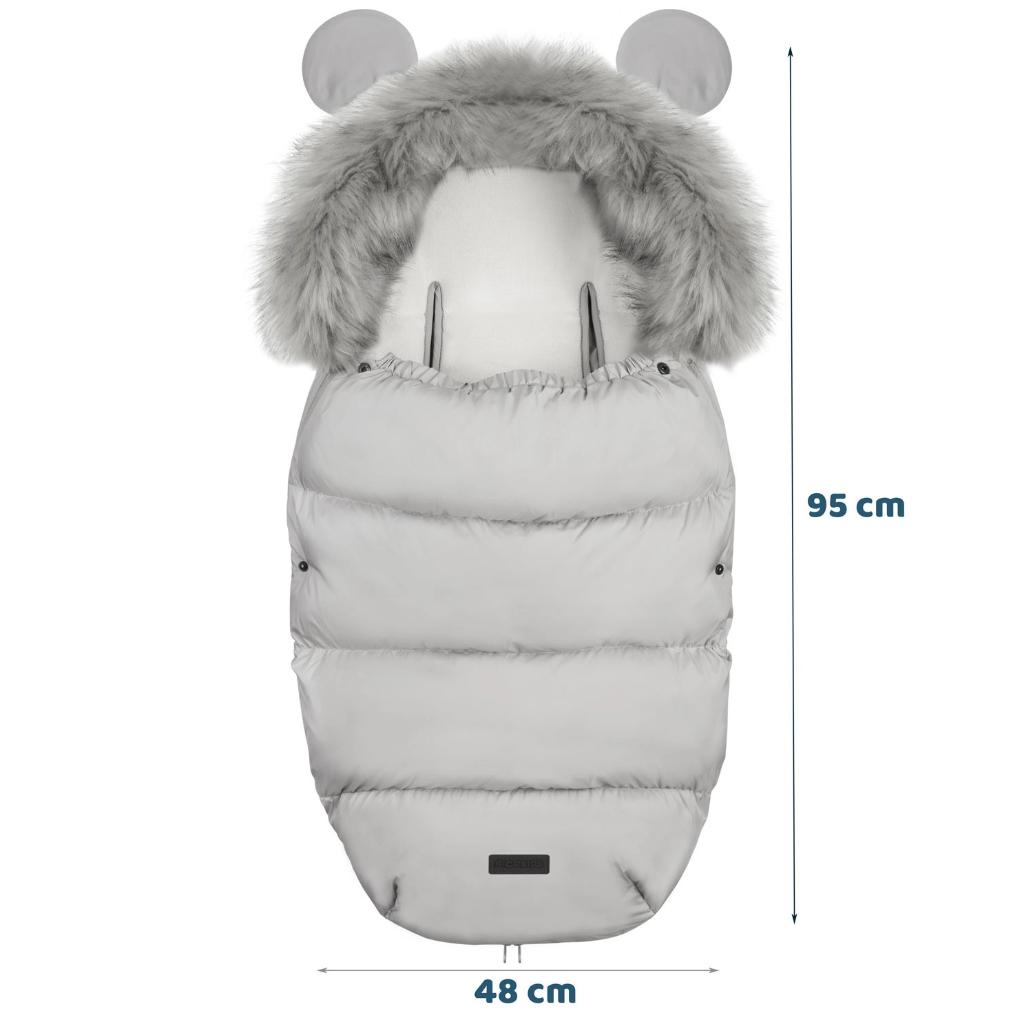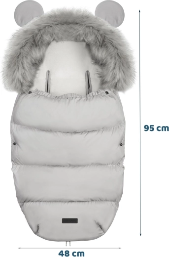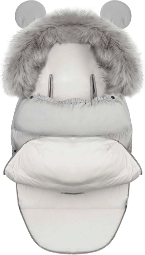 Les fermetures éclair double sens permettent une aération rapide par le bas et une ouverture facile par le haut, afin d’ajuster la chancelière aux conditions météo. La fourrure amovible peut être retirée avant le lavage. La chancelière peut également être déployée et utilisée comme liner pour poussette.