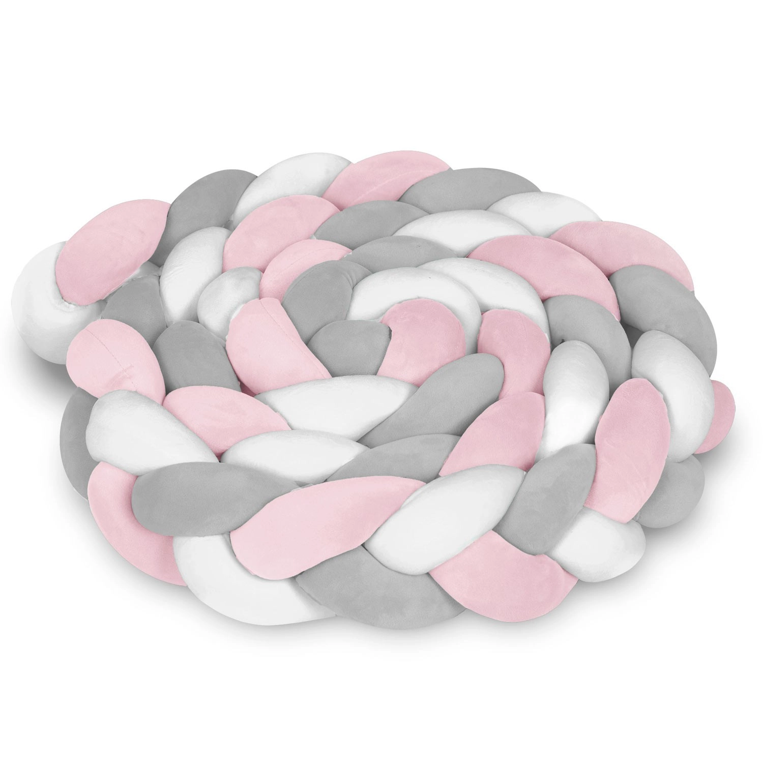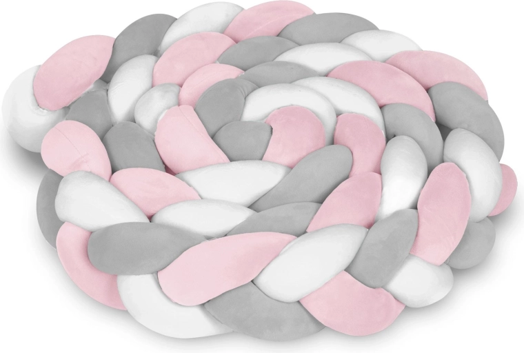 Tour de lit tressée pour bébé, douce et antiallergique, dans une combinaison moderne rose‑gris assurant la sécurité dès les premiers jours, protégeant des chocs contre les barreaux et des courants d’air, tout en rendant la chambre plus douillette. Grâce à sa longueur de 3 m et une hauteur d’environ 11,5 cm, elle s’adapte facilement au lit ou au coin de jeu, est agréable au toucher et simple à entretenir (lavage à 30 °C).