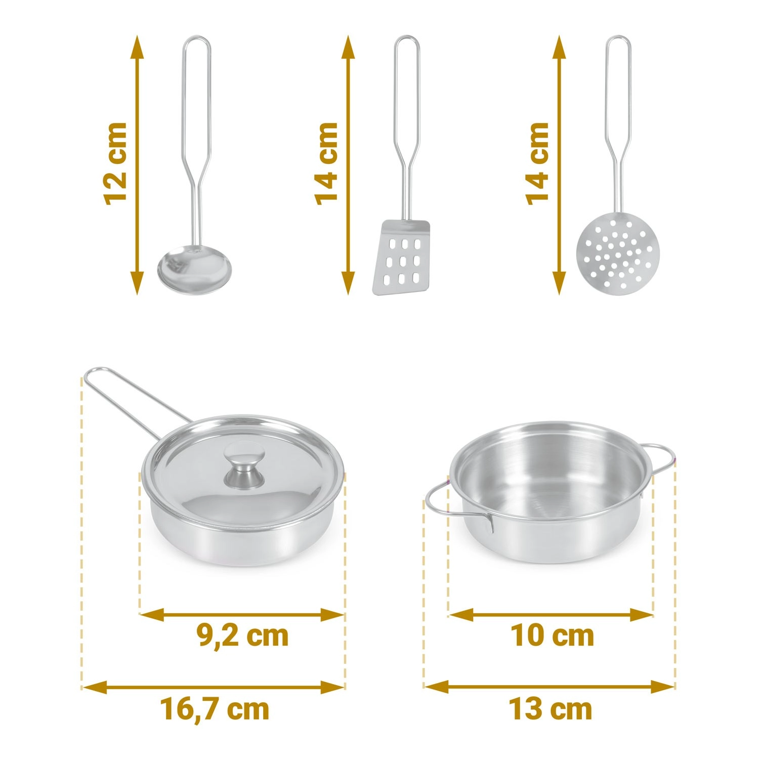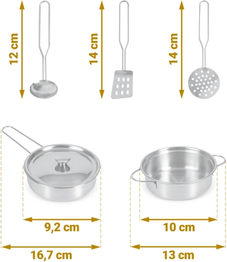 Deux plaques de cuisson avec son de rotation des boutons, des crochets pour les ustensiles et des casseroles métalliques stimulent l’imagination et rapprochent les enfants de la vraie cuisine.