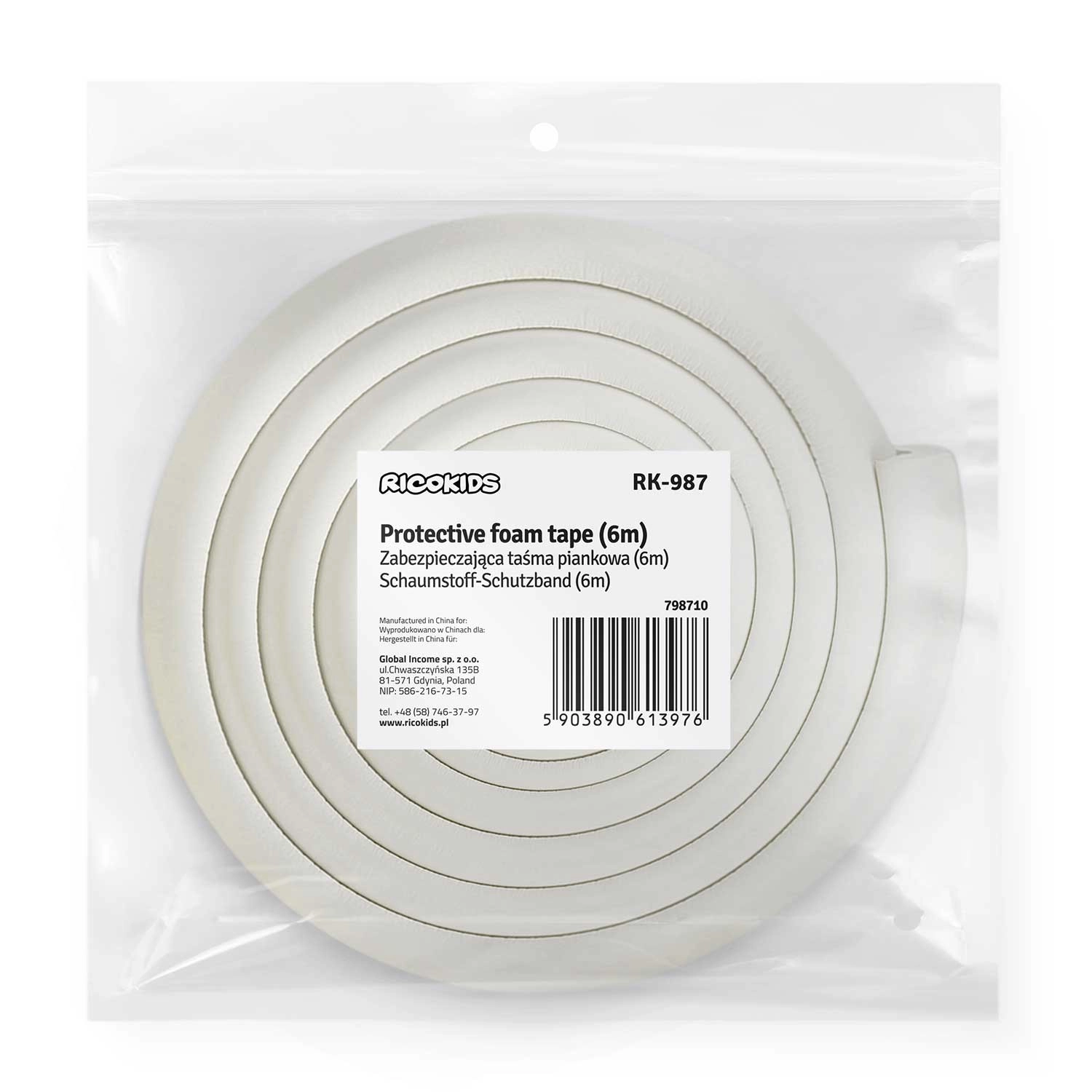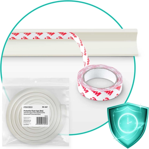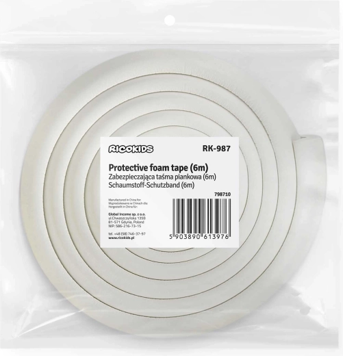 Protégez vos enfants et votre mobilier avec le protège-bords en mousse RICOKIDS de 6 m. Mousse souple et épaisse pour amortir les chocs, résistance aux UV contre le jaunissement et ruban adhésif 3M fiable pour une fixation solide sans outils. Idéal pour tables, armoires et plans de travail – s’ajuste facilement à la longueur souhaitée et ne laisse pas de traces après démontage.