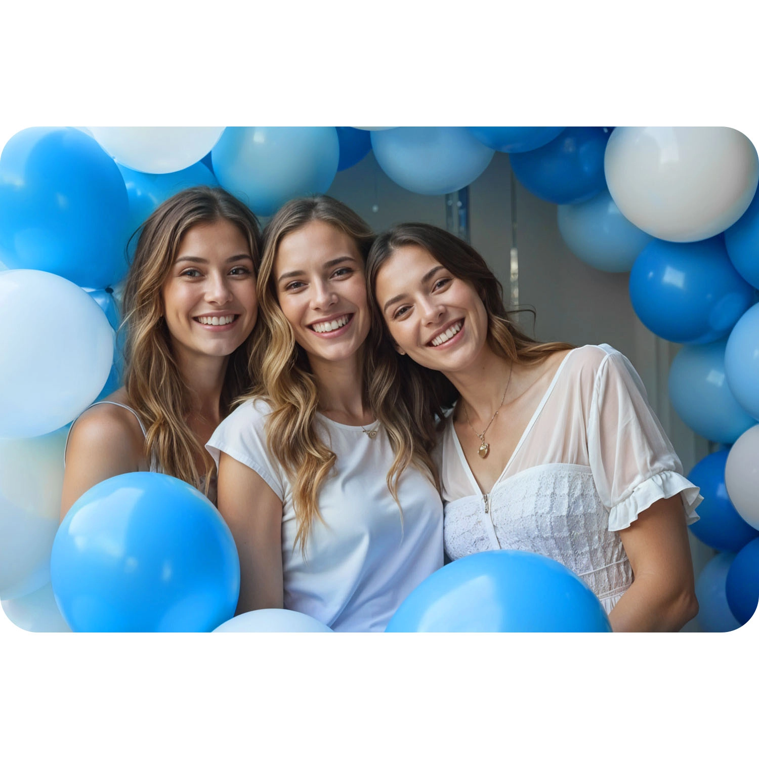 Le pack contient tout le nécessaire : 30 ballons en latex en blanc, bleu clair et bleu foncé, ainsi que 40 mètres de ruban décoratif argenté pour l’attache ou la création de guirlandes. Le set est idéal pour les anniversaires, mariages, baby shower, fêtes d’enfants et coins photo thématiques.