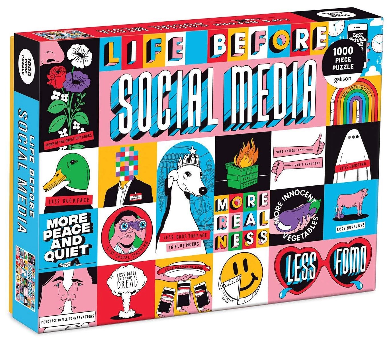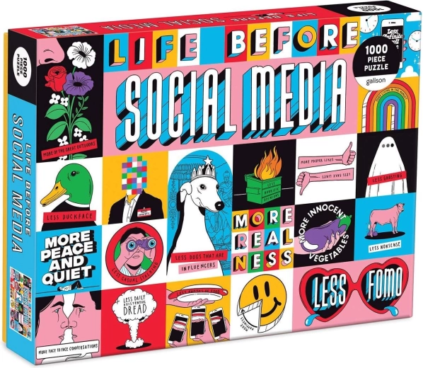 Découvrez le plaisir d’un puzzle de qualité signé Galison. L’illustration La vie avant les réseaux sociaux de l’artiste Toby Triumph vous fera sourire tout en mettant votre patience à l’épreuve. La boîte contient 1000 pièces et, une fois assemblé, le puzzle forme une image de 69 × 51 cm, idéale à encadrer ou à exposer.