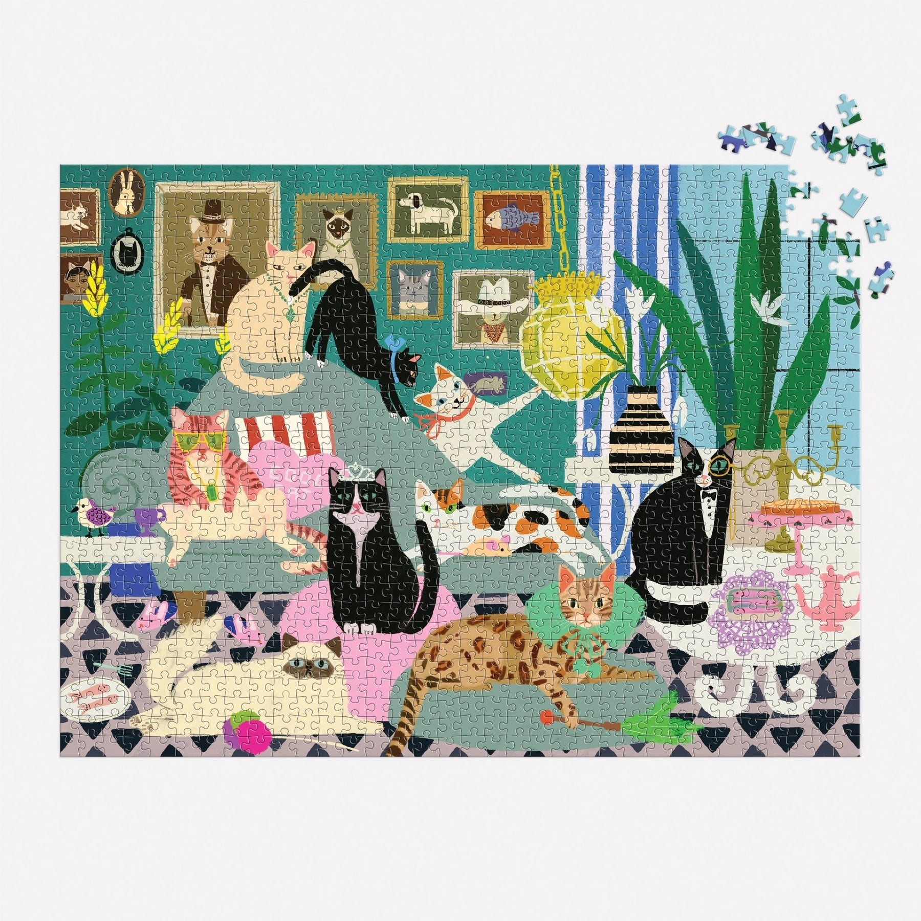 Une fois assemblé, il forme une image décorative de 68,6 × 50,8 cm, parfaite pour un mur ou une étagère. Ce puzzle est un cadeau idéal pour les amoureux des chats, les moments en famille, ou comme choix élégant pour se détendre après une journée chargée.
