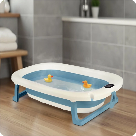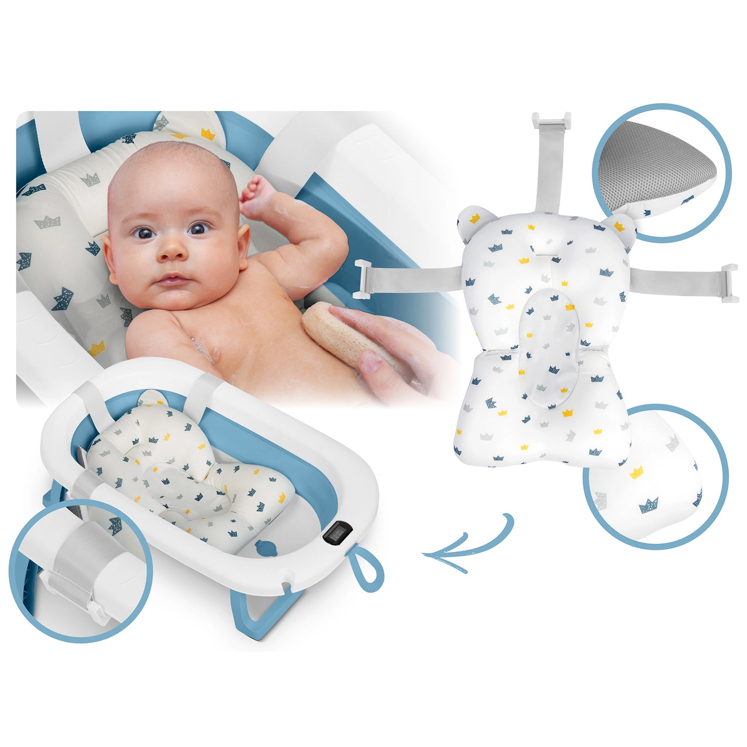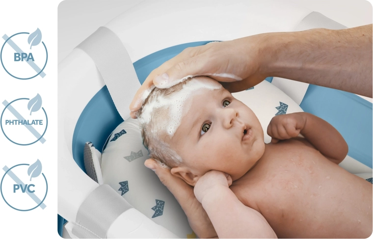 Cette baignoire pliable pour bébé est conçue pour un bain sûr et confortable dès les premiers jours. Le thermomètre électronique avec sonde précise et écran LCD aide à maintenir la température idéale de l’eau, tandis que le bouchon change de couleur lorsque la température dépasse 38 °C. Elle comprend un insert doux, respirant et à séchage rapide avec des sangles réglables, qui soutient délicatement la tête et le dos de bébé.