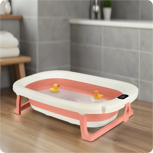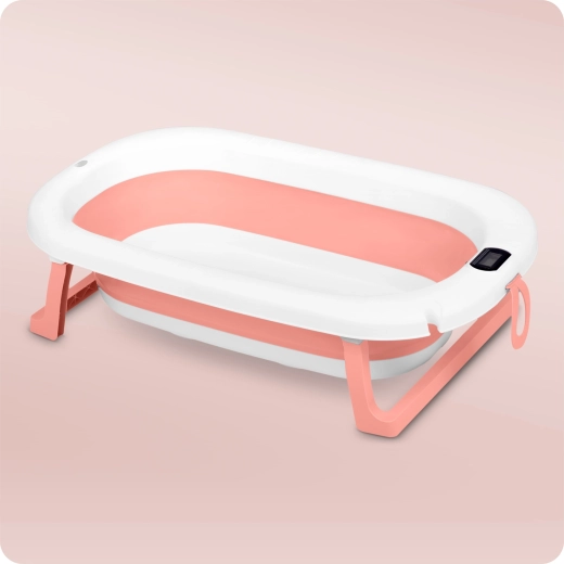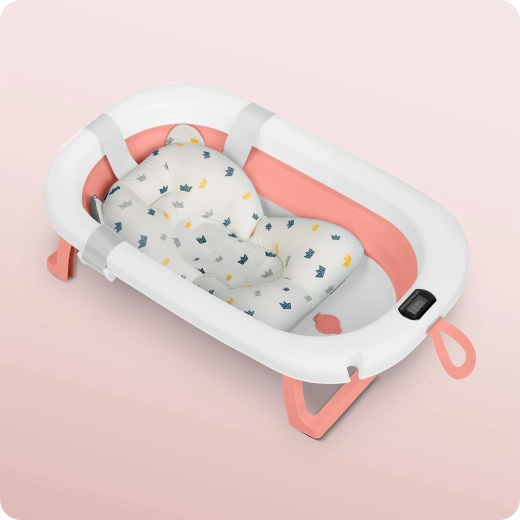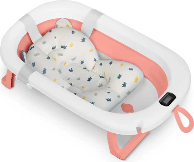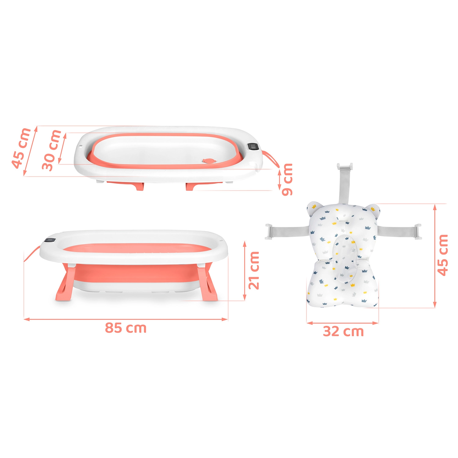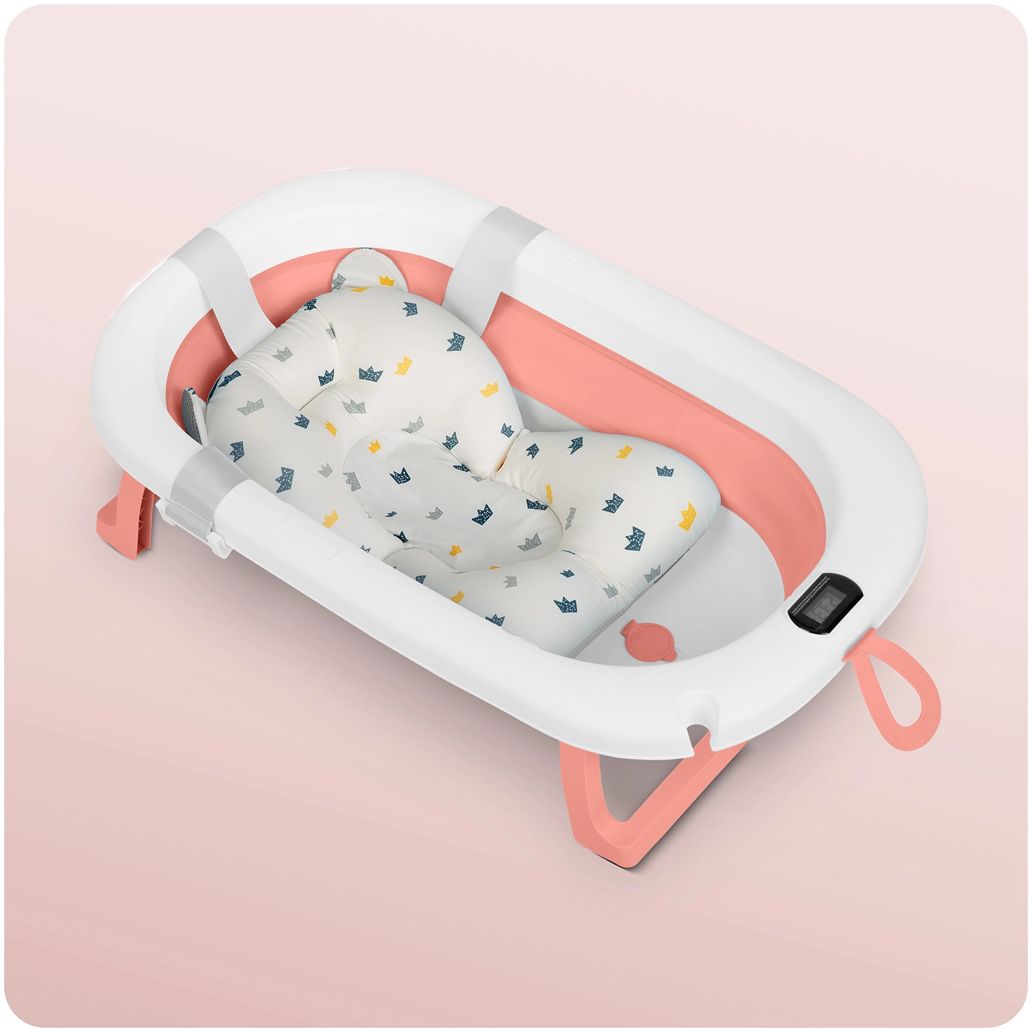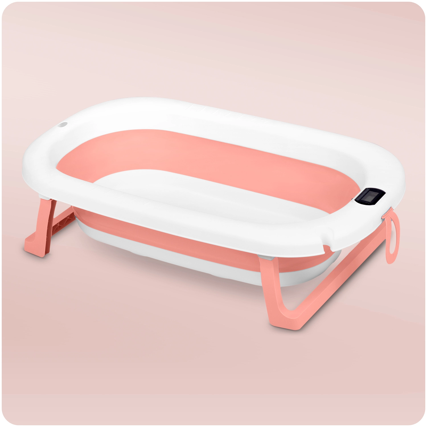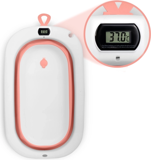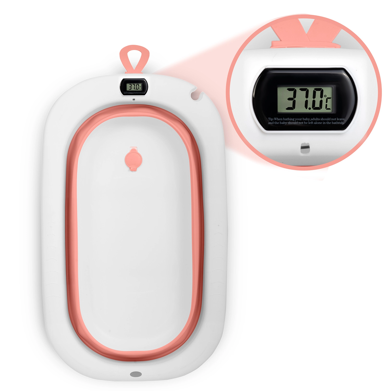 Baignoire pliable pour bébé avec thermomètre et insert, rose-blanc