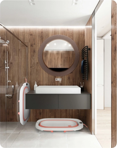 La structure pliante robuste avec pieds antidérapants garantit la stabilité même sur surface glissante. Le support de pommeau de douche intégré facilite le remplissage sans projection. Après le bain, pliez simplement la baignoire en un format compact, suspendez‑la par l’anneau ou rangez‑la dans un placard – idéale pour les petites salles de bain et les voyages.