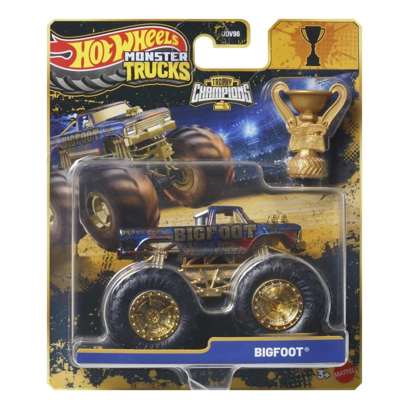 La collection commémorative spéciale Hot Wheels Monster Trucks Trophy Champions présente l’emblématique BIGFOOT dans une finition premium. Une construction robuste, de grandes roues profilées et des détails dorés soulignent son look légendaire, tandis que le trophée inclus ajoute l’ambiance parfaite à chaque course. Un modèle idéal à la fois pour le jeu et pour l’exposition en vitrine.