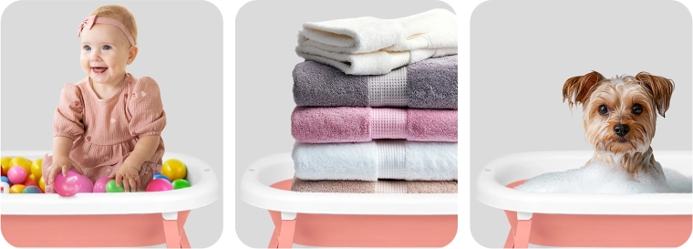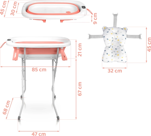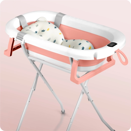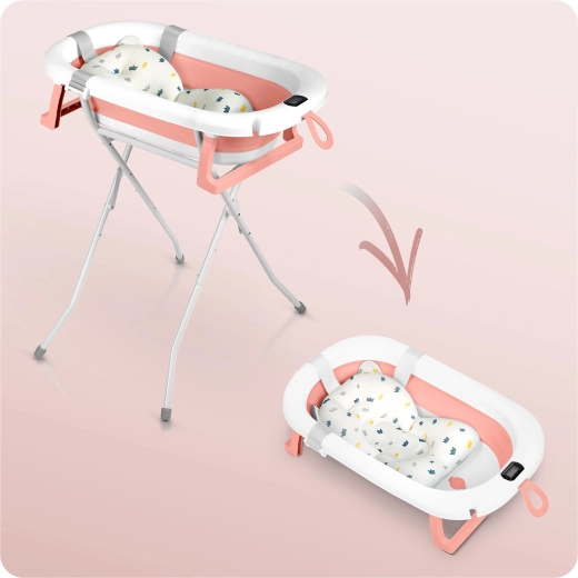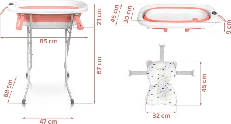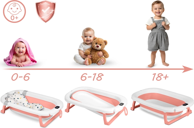 La baignoire évolue avec l’enfant : avec insert pour 0–6 mois, sans insert et avec pieds stables pour 6–18 mois, puis suffisamment d’espace même pour les petits explorateurs d’âge préscolaire. Son design pliable facilite le rangement et les déplacements, tandis que des matériaux de qualité sans BPA garantissent hygiène et sécurité. Des détails pratiques comme le porte‑pommeau de douche, les poignées latérales et l’insert à séchage rapide en font un allié du quotidien.
