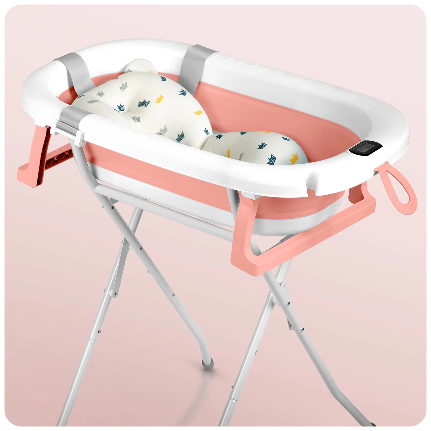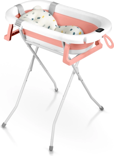 Pratique, la baignoire pour bébé RICOKIDS avec support pliable robuste, insert moelleux pour nouveau-né et thermomètre électronique assure un bain confortable et sécurisé dès les premiers jours. Grâce à sa structure pliable, à ses pieds antidérapants et à son bouchon qui change de couleur au‑delà de 38 °C, vous gardez toujours la température et la stabilité sous contrôle. La baignoire est légère, facile à transporter et conforme aux normes européennes de sécurité.