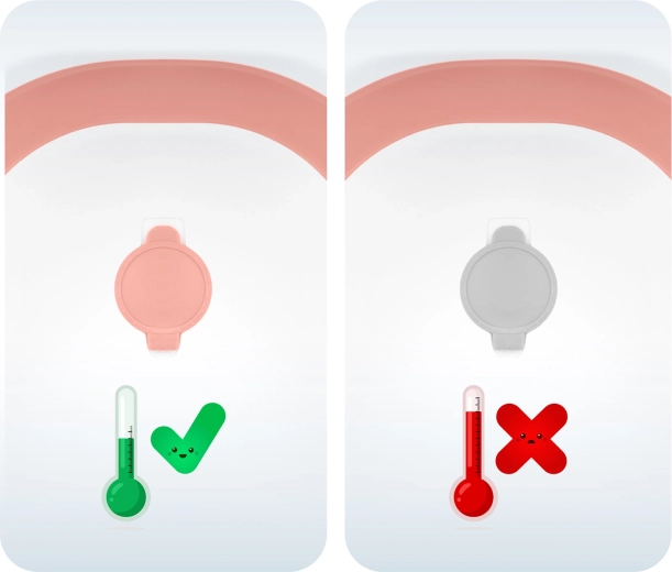 La température de l’eau est surveillée par un thermomètre électronique précis avec écran lisible. Le bouchon devient blanc lorsque 38 °C sont dépassés – un signal clair que l’eau est trop chaude.
