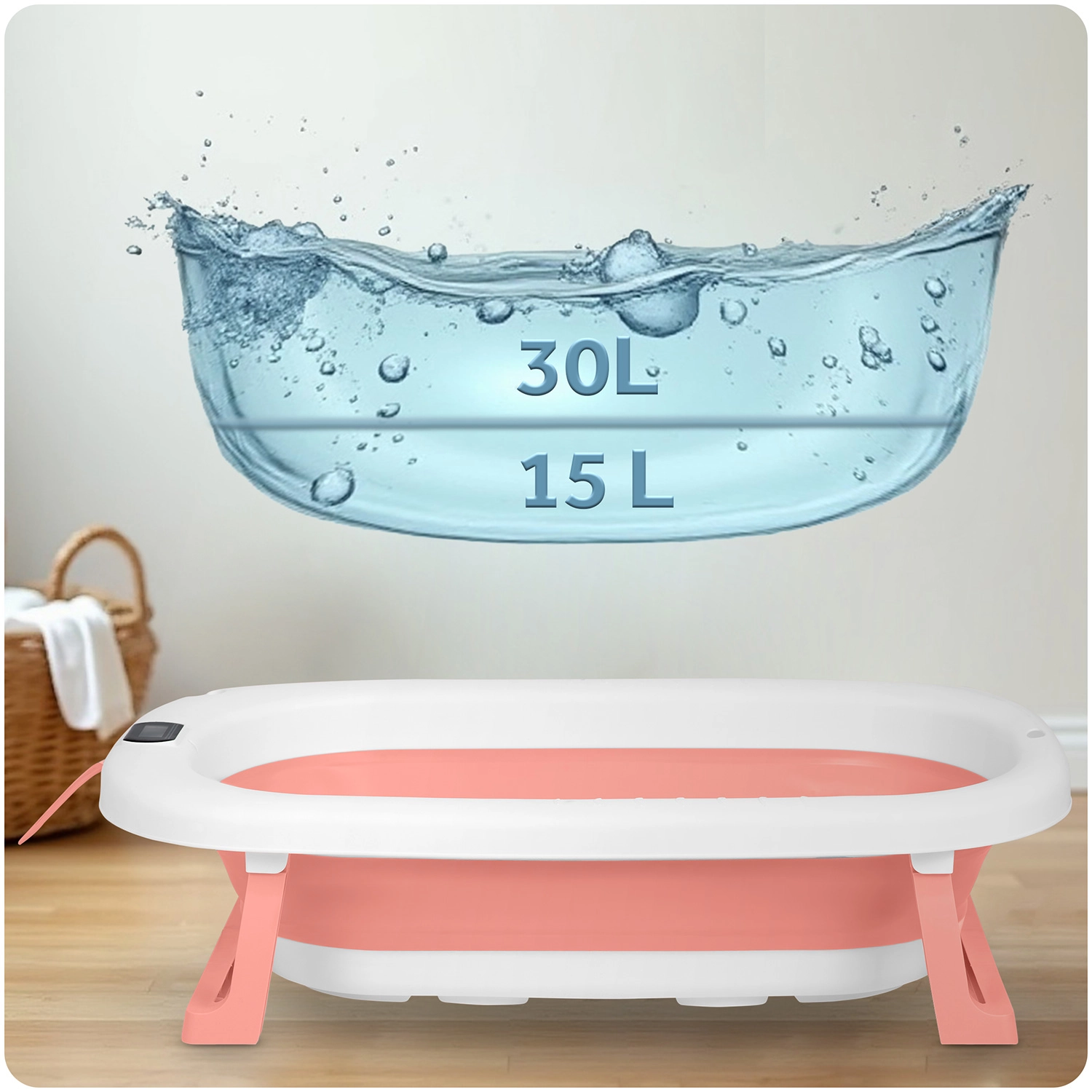 Profitez d’un bain serein sans souci. La baignoire pliable RICOKIDS offre une position surélevée et stable grâce à son support robuste, un appui doux pour la tête et le dos du nouveau-né, et un contrôle précis de la température de l’eau via un thermomètre électronique avec écran LCD. Le bouchon astucieux change de couleur au‑delà de 38 °C, pour garder la température idéale sous les yeux.
