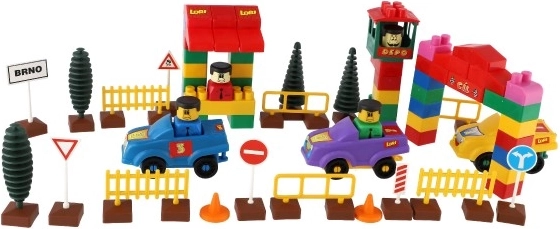 Le kit contient des éléments réalistes qui stimulent l'environnement de trafic pour jouer, tels que des voitures, des arbres et des panneaux de signalisation.