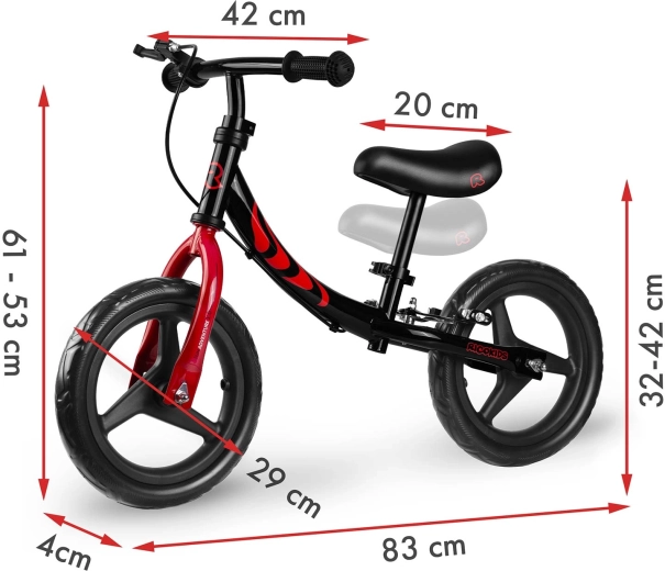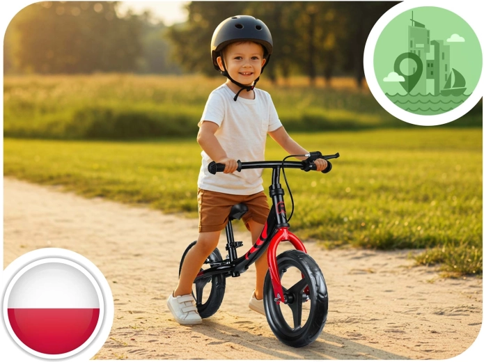 Un design polonais soigné qui répond aux normes européennes de sécurité. Les poignées antidérapantes avec butées assurent une prise en main sûre, tandis que la selle ergonomique à réglage continu en hauteur s'adapte à la croissance de l'enfant. Le frein arrière facilite un arrêt en toute sécurité et améliore le contrôle de la conduite.