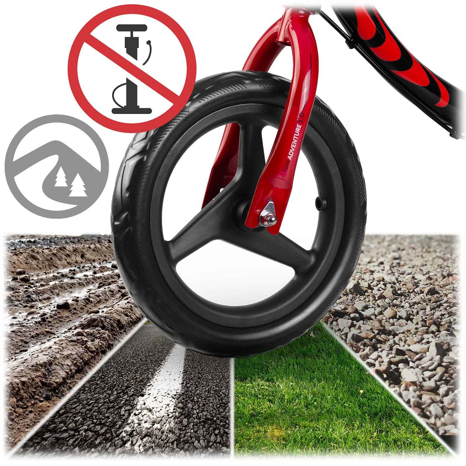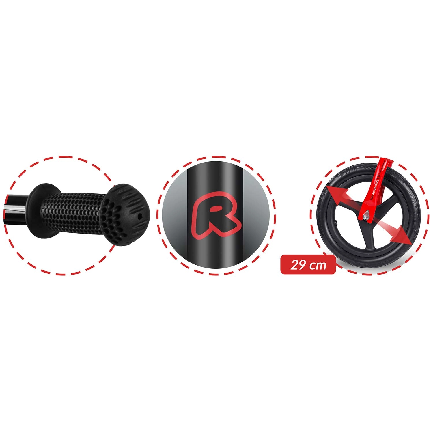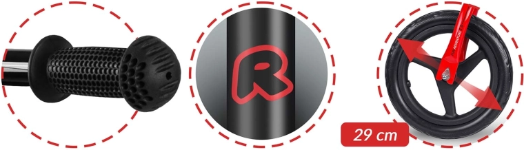 • Roues EVA increvables de 29 cm – résistantes à l'humidité, aux UV et aux basses températures, faciles à nettoyer.