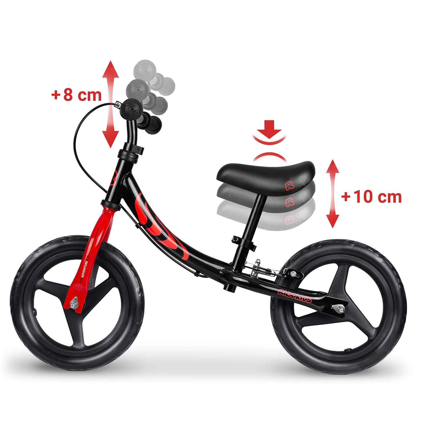 Ricokids Fun Adventure aide les enfants à acquérir naturellement l'équilibre et l'assurance à vélo. Grâce à sa construction compacte et légère, vous l'emportez facilement au parc, sur l'aire de jeux ou en excursion. Les pneus EVA sont silencieux, ne nécessitent pas de gonflage, ne se percent pas et adhèrent bien sur l'herbe, l'asphalte comme le sable.