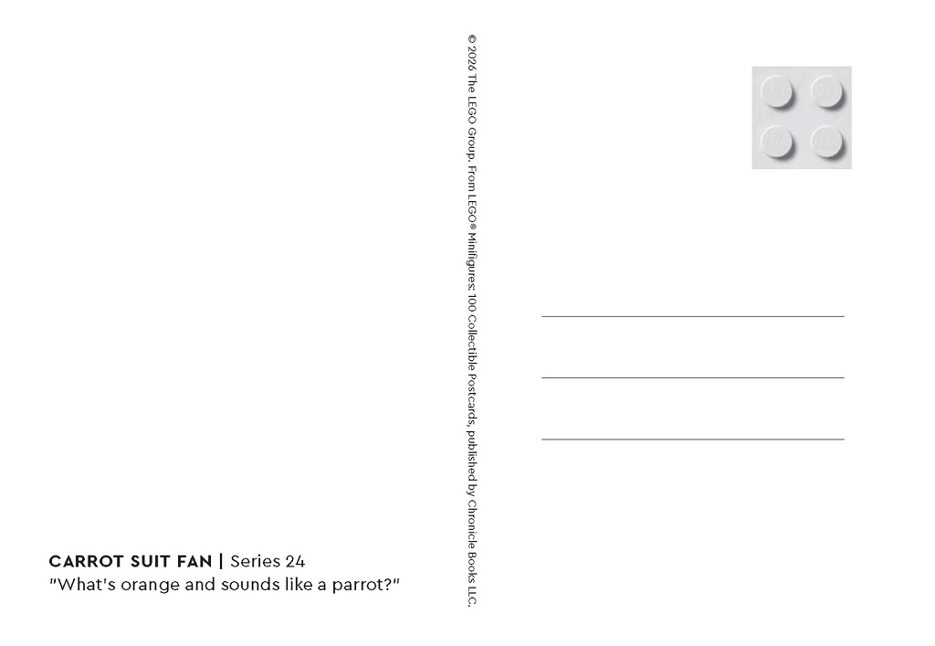 Au verso de chaque carte postale figurent des informations complémentaires – nom de la minifigurine, série ainsi que slogan officiel empreint de l’humour typique de LEGO. Utilisez l’ensemble pour envoyer des salutations, comme décoration murale originale ou pour créer votre propre galerie LEGO à la maison.