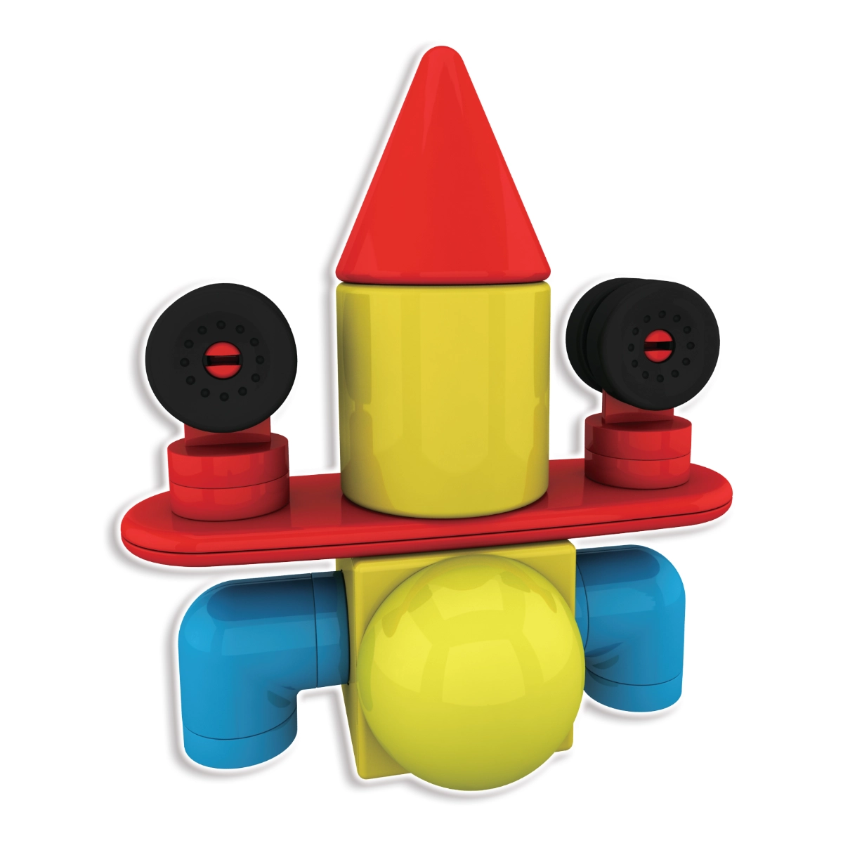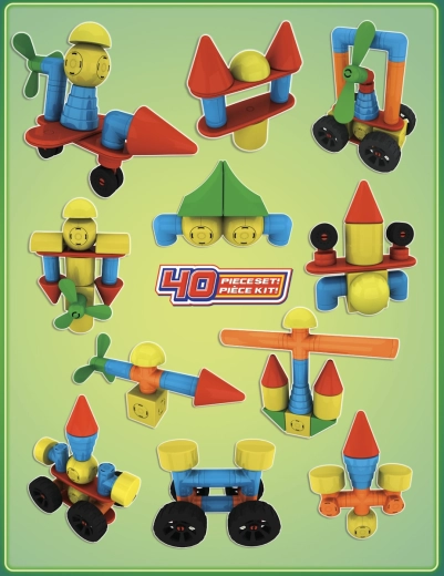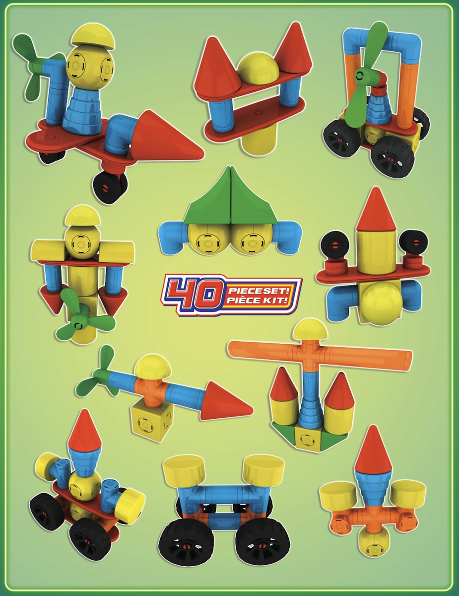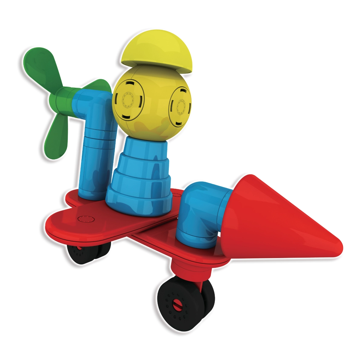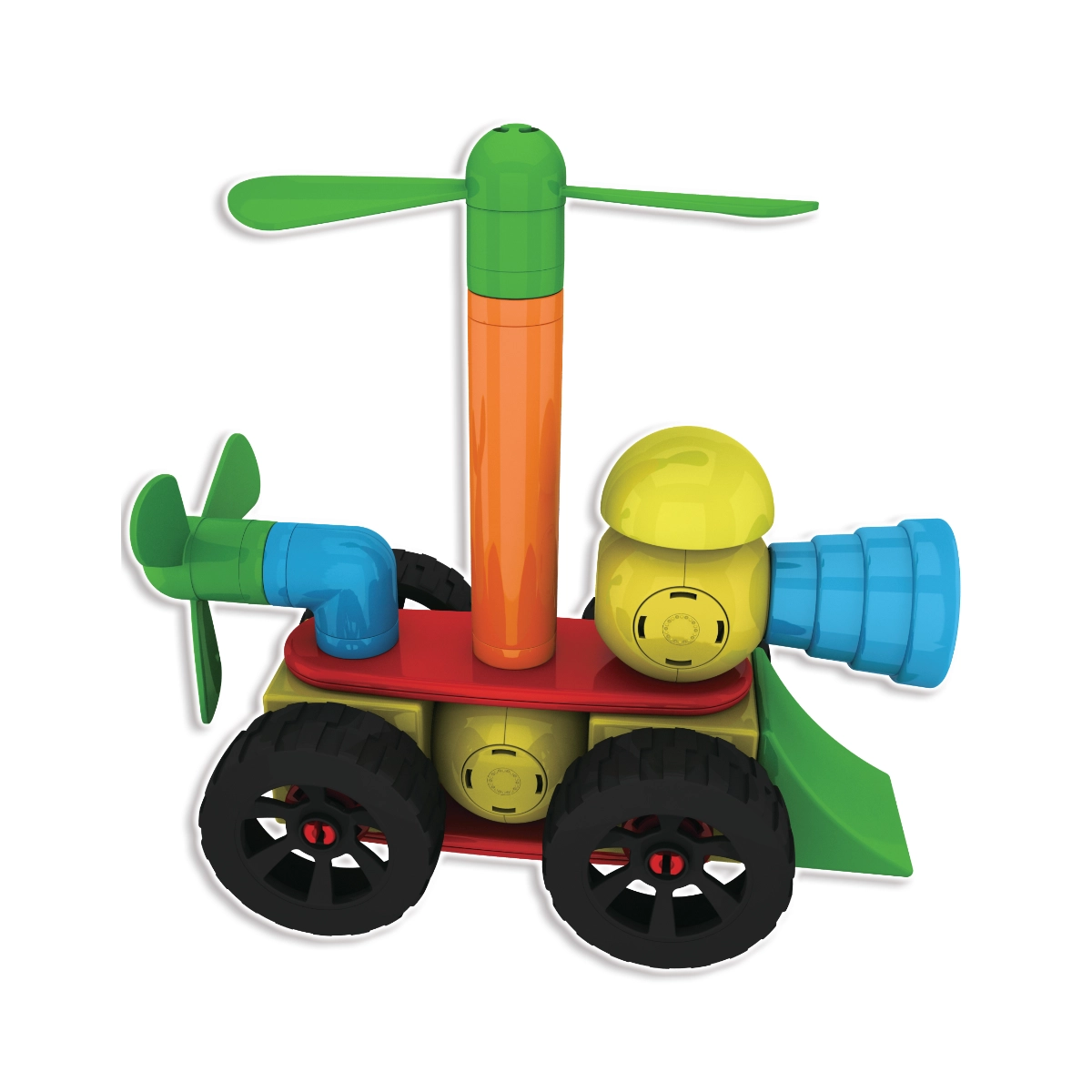 Les roues et les hélices transforment les constructions en véhicules dynamiques et en machines volantes. Les enfants peuvent sans cesse reconstruire et explorer de nouvelles combinaisons qui stimulent la créativité et la logique.