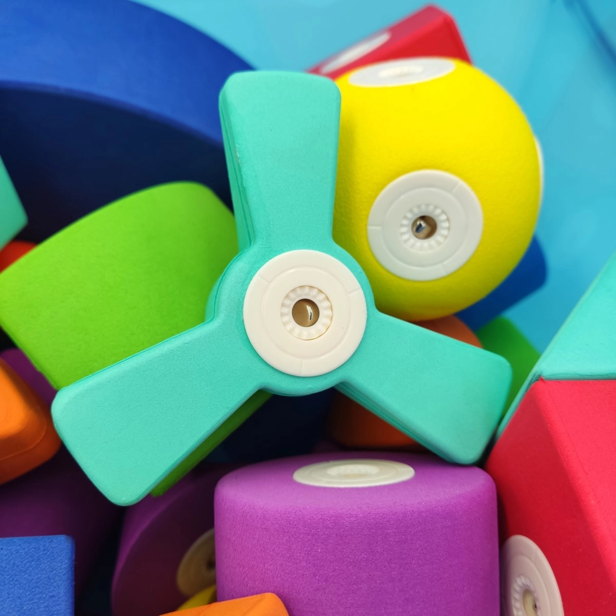 Une mousse légère à la texture agréable, douce pour les mains des enfants et les sols. Aucune arête vive – seulement un jeu serein et une manipulation aisée.
