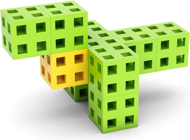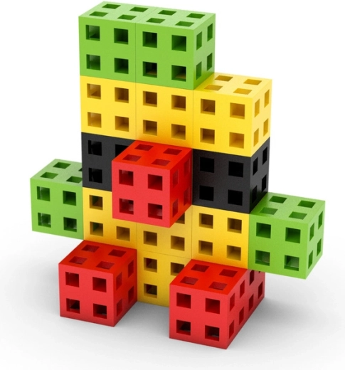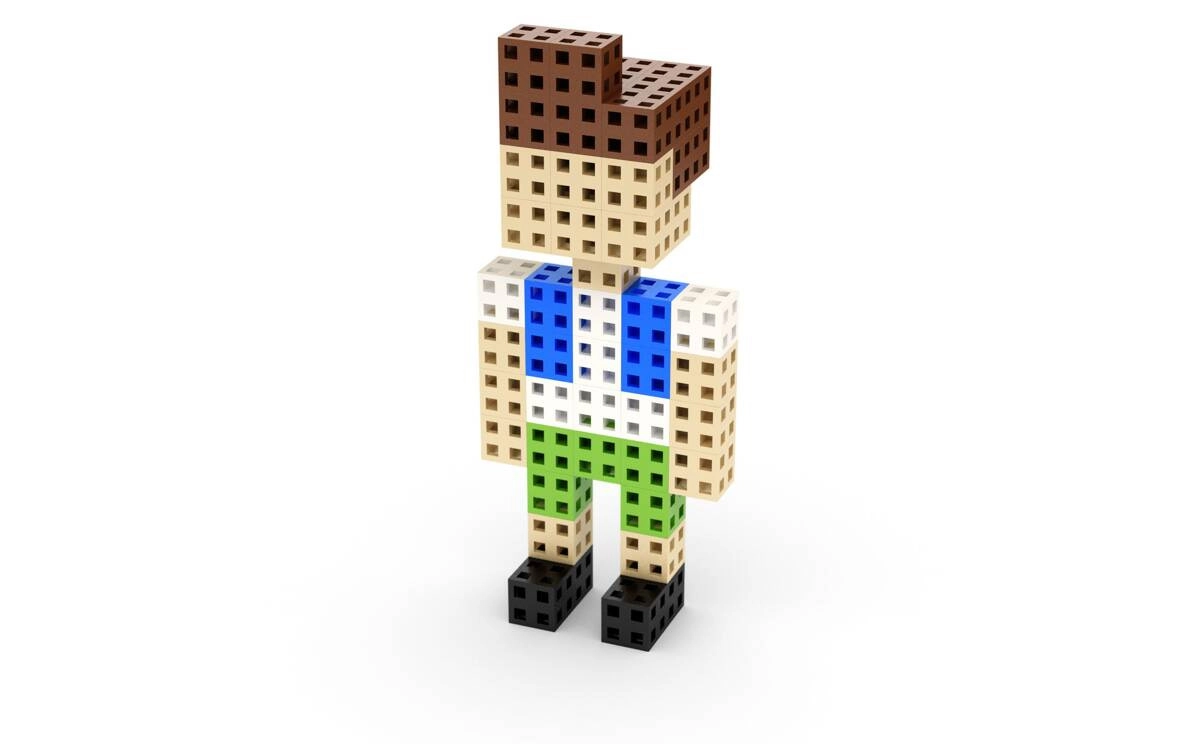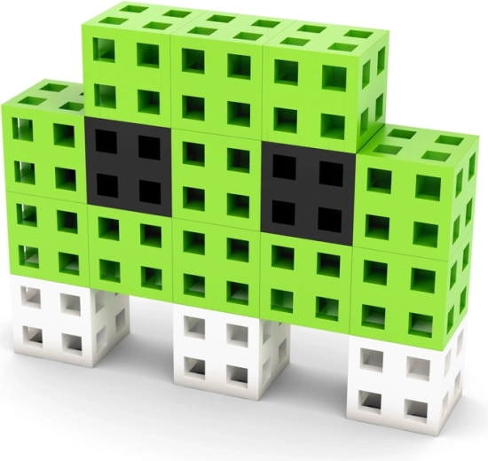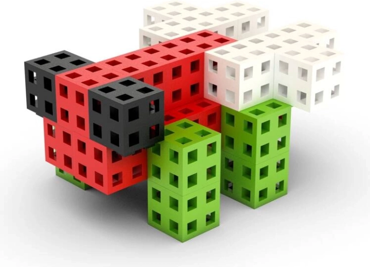 Les cubes de 2 × 2 × 2 cm, dotés d’une grille creuse, s’assemblent dans plusieurs directions, ce qui permet de créer facilement des personnages, des animaux et des modèles architecturaux.