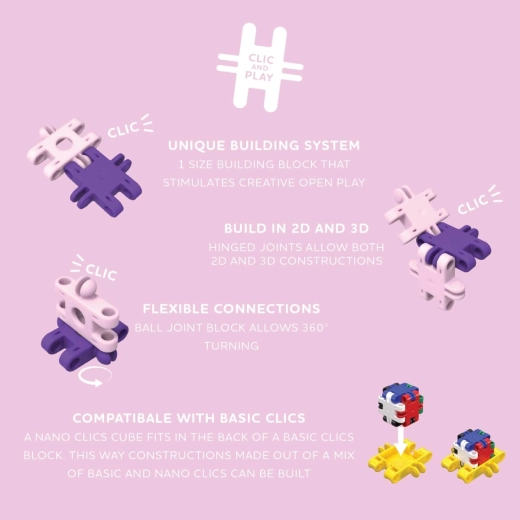 Élargissez l’imagination des enfants avec des projets épiques. Le set Nano Clics, composé de 250 petits éléments de construction, est conçu pour des modèles détaillés et des structures réfléchies. Les enfants peuvent bâtir des châteaux grandioses, des armées de créatures et des royaumes entiers, tout en développant leur motricité fine, leur patience et leur capacité à raconter leurs propres histoires.