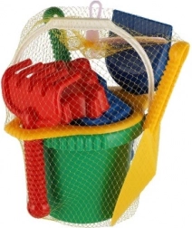 Ce kit de sable en plastique contient divers outils et formes pour des constructions et créations fantastiques. Grâce à son emballage pratique dans un filet de dimensions 20x28x12 cm, vous pouvez facilement transporter l'ensemble complet.