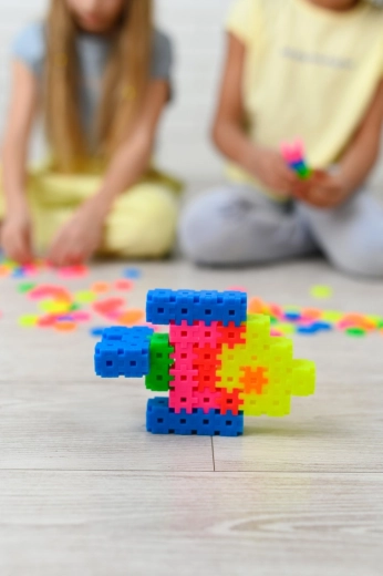 La grande quantité de pièces néon se clipse en toute simplicité, permettant aux enfants de construire rapidement véhicules, bâtiments et formes imaginaires sans frustration.