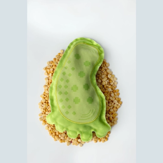 Chaque coussin offre une texture différente : enveloppes de sarrasin, graines de lin, noyaux de cerise, riz, soja, sarrasin, millet et pois. Les enfants différencient les surfaces et renforcent leur perception tactile.