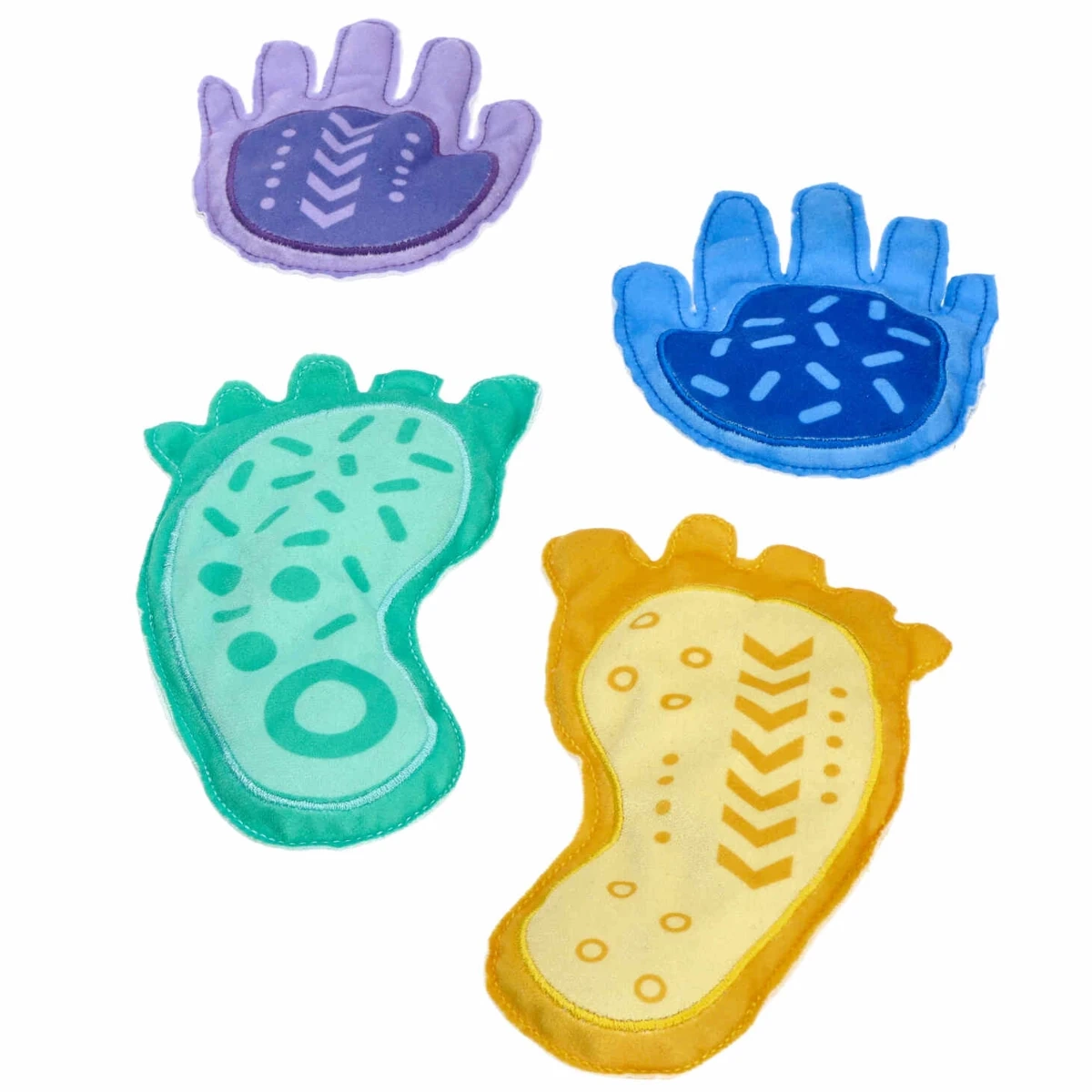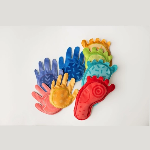 Le parcours sensoriel Tup Tup offre aux enfants de riches stimuli tactiles grâce à huit coussins en forme de mains et de pieds. Chacun est rempli d’un matériau naturel différent (p. ex. enveloppes de sarrasin, graines de lin, noyaux de cerise, riz, soja, sarrasin, millet, pois) qui proposent des textures et niveaux de pression uniques. En marchant pieds nus, en jouant et en s’exerçant, les enfants renforcent leur équilibre, leurs capacités de coordination et améliorent la perception de leur corps.