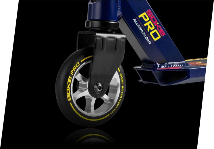 Légère et résistante, la trottinette freestyle SOKE PRO est idéale pour le skatepark comme pour la street. Elle offre un guidon Y‑bar à 360°, des roulements ABEC‑9 haut de gamme, des roues 110 mm à noyau en aluminium et un frein FLEX FENDER efficace. Grâce à son poids plume de 3,4 kg, à son système HIC robuste et à ses poignées TPR de 145 mm, vous bénéficiez d’une excellente maniabilité, vitesse et stabilité.