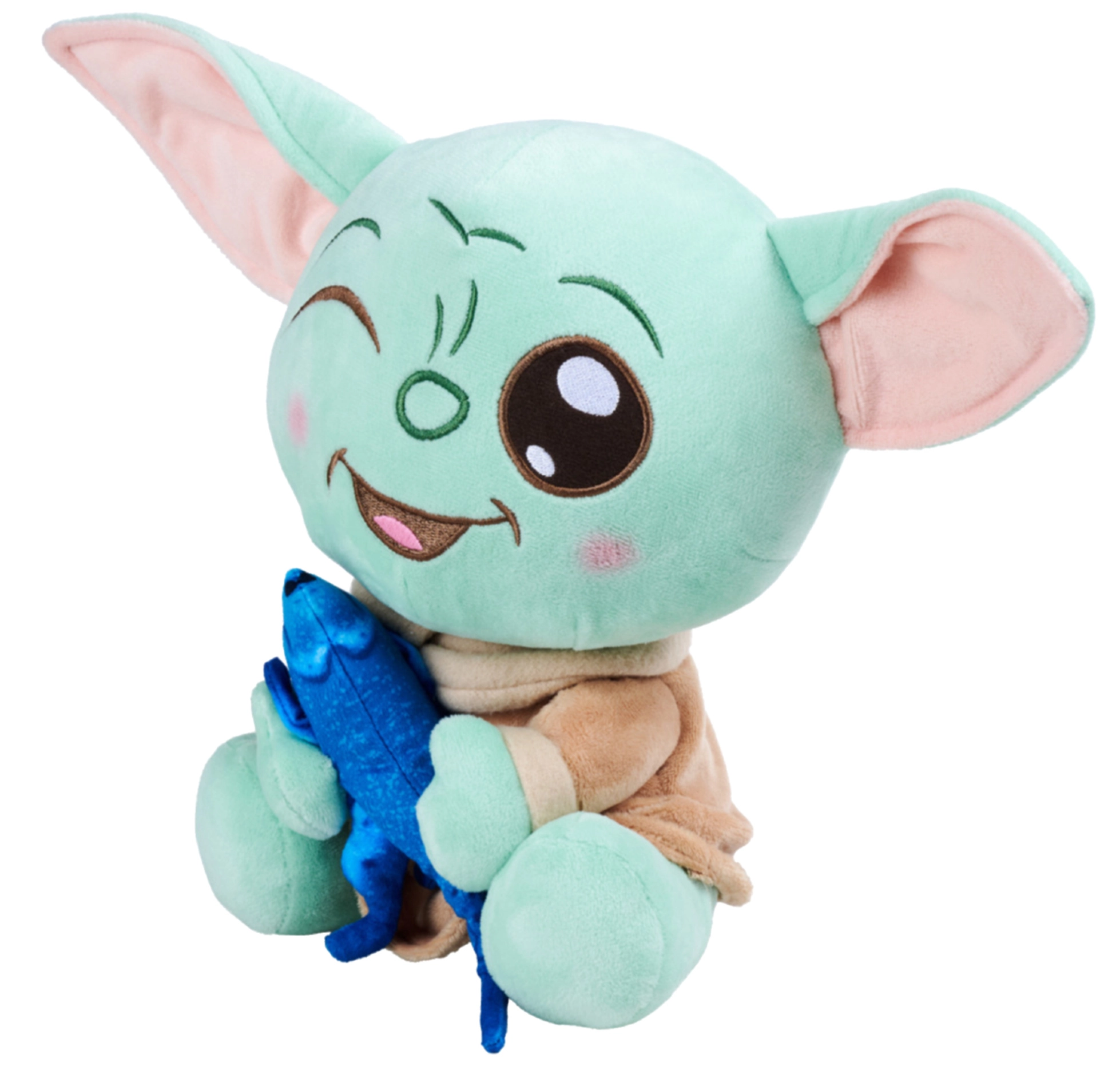 Apportez la magie de la galaxie chez vous avec l’emblématique Grogu (Baby Yoda). Cette figurine en peluche de qualité séduit par son matière douce et moelleuse et ses traits du visage soigneusement brodés. L’accessoire amusant en forme de petit poisson bleu renvoie à des scènes mémorables de la série et donne un caractère unique à la peluche.